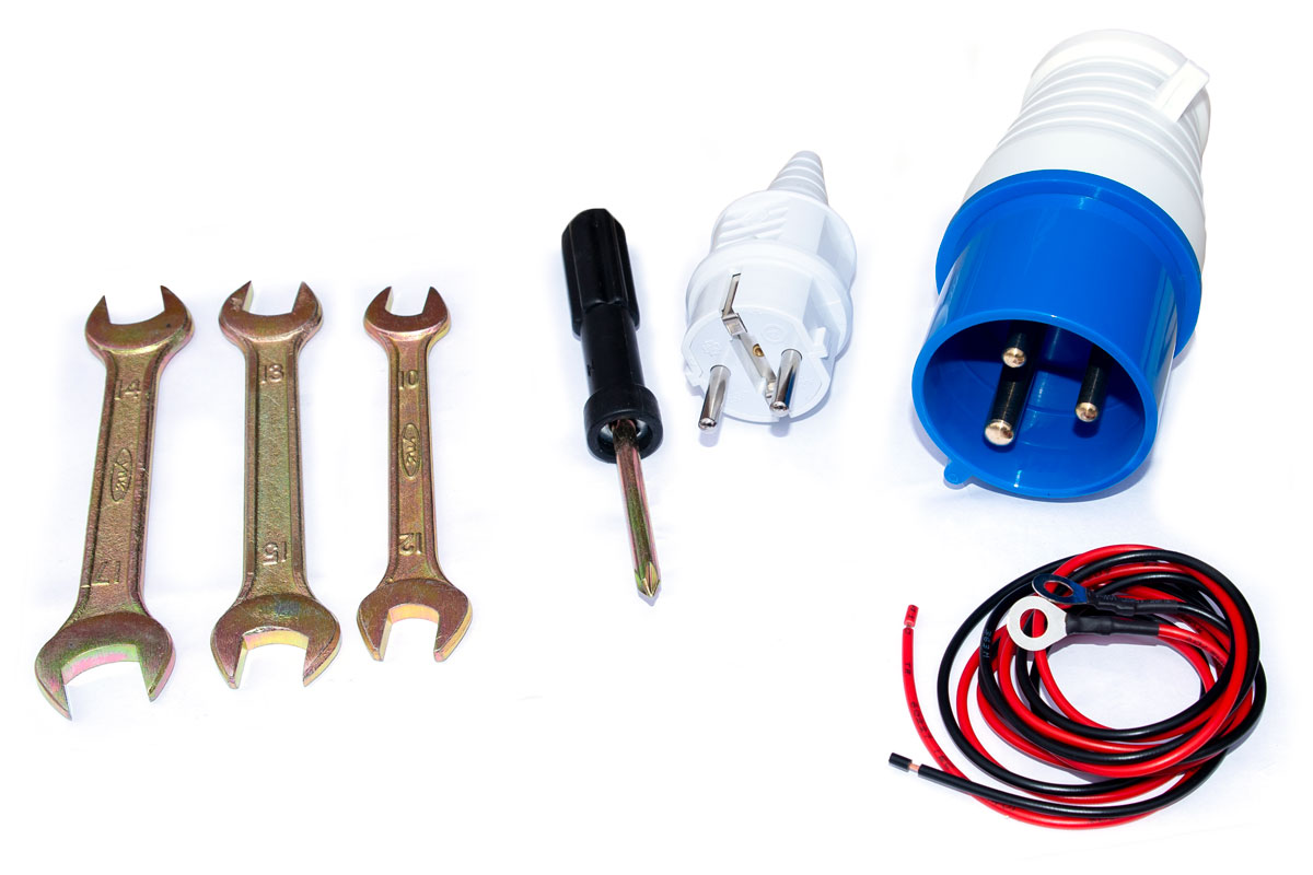 Электрическая вилка, разъем для АВР, предпусковой подогреватель, комплект проводов, колёса