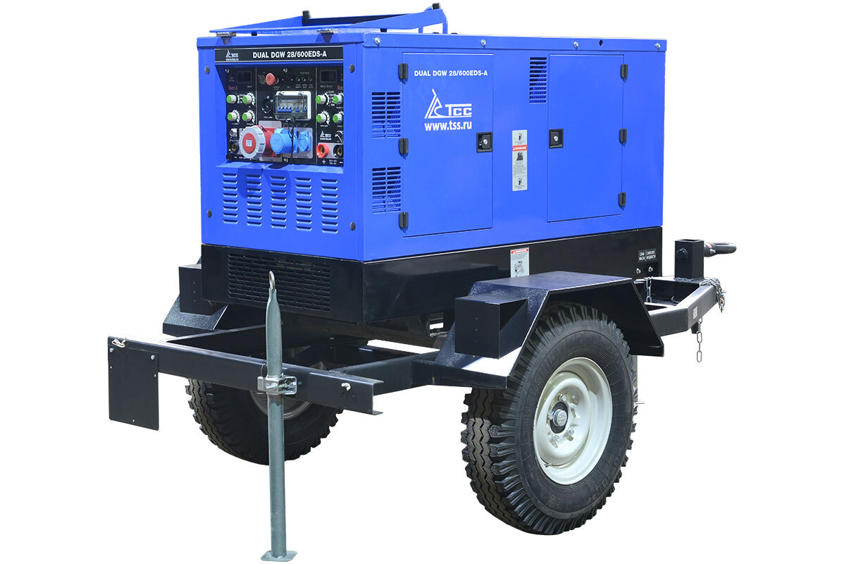 ДТрехфазный дизельный генератор TSS DUAL DWG-500 — это мощное решение для сварки и энергоснабжения! Ваш надежный помощник при строительных работах, на производственных объектах или аварийных ситуациях. Максимальная мощность 25 кВт позволит подключить любые инструменты и оборудование. Складная конструкция, система предпускового подогрева и удобный запуск электростартером делают его практичным в эксплуатации. А встроенная защита и контроль параметров обеспечивают безопасность работы. Не упустите шанс приобрести профессиональное оборудование от надежного бренда TSS!вухпостовой дизельный сварочный генератор TSS DUAL DWG-500