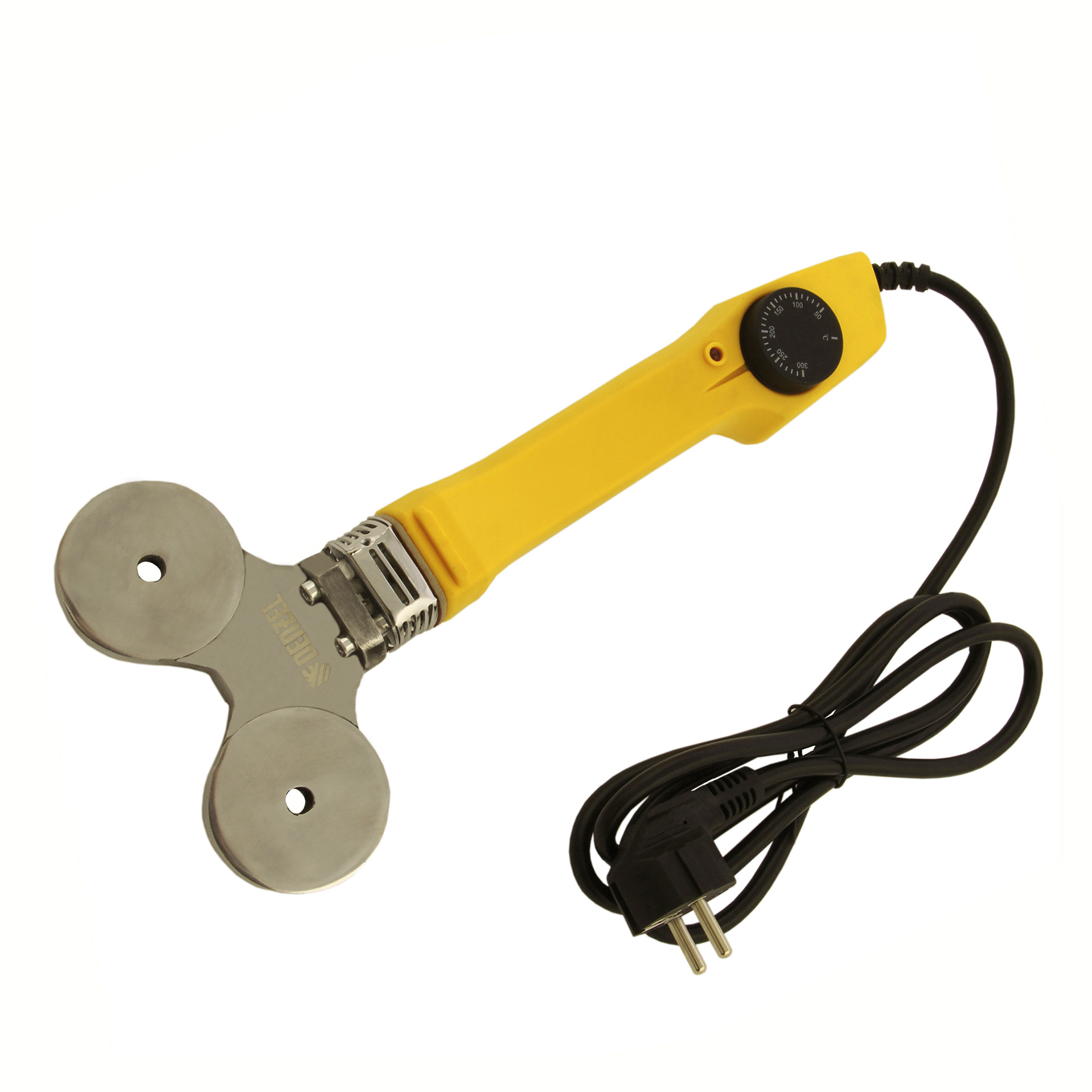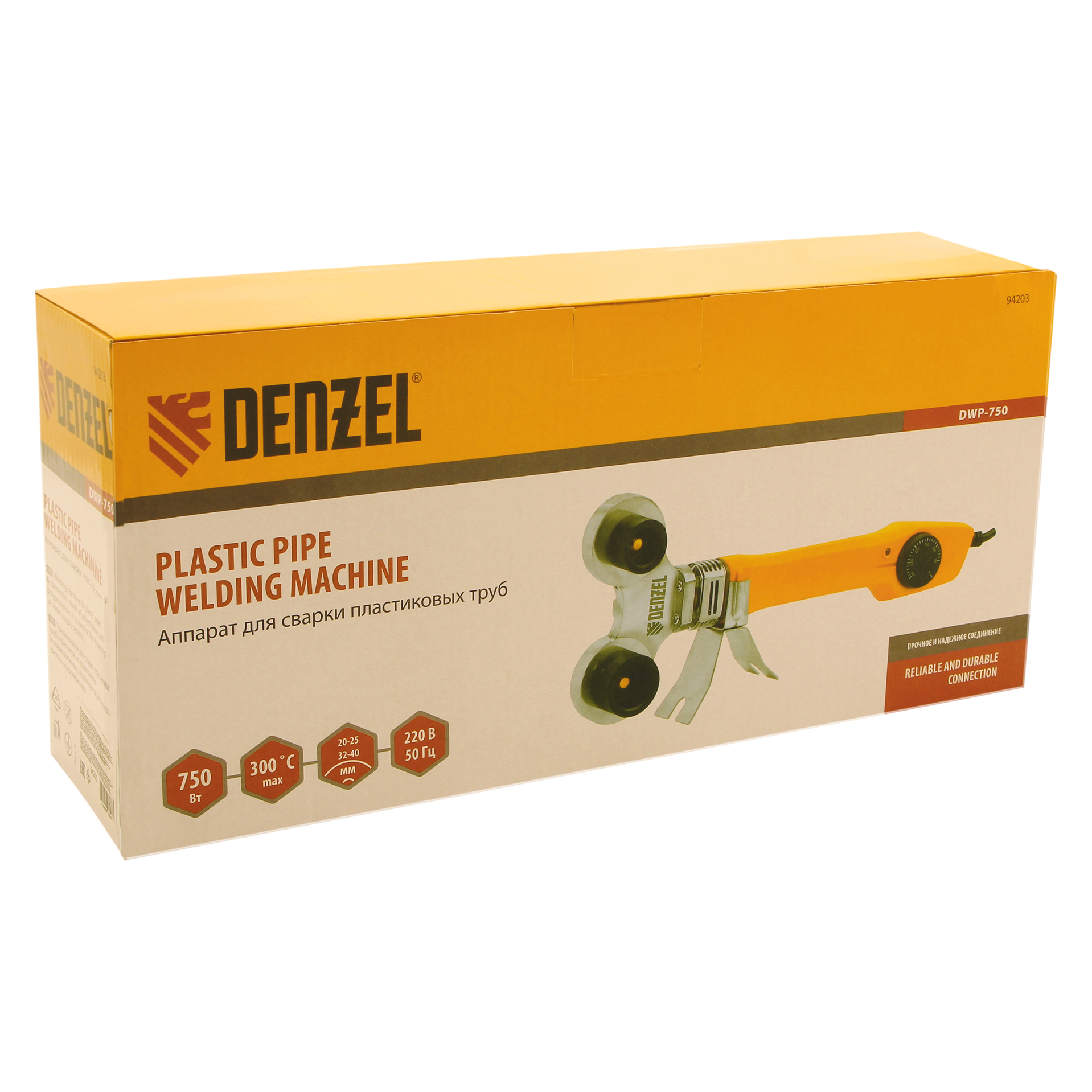 Аппарат для сварки пластиковых труб Denzel DWP-750 94203 мощностью 750 Вт, с рабочей температурой 0-300 ℃, с комплектом насадок диаметром 20-40 мм, применяется при монтаже и разводке систем холодного, горячего водоснабжения, отопления и канализации. Используется для труб из полипропилена и полиэтилена. В основе его функционирования лежит воздействие высокой температурой, которая обеспечивается благодаря мощности 750 Вт. Аппарат работает от бытовой сети, поэтому идеально подходит для применения в домашних условиях.