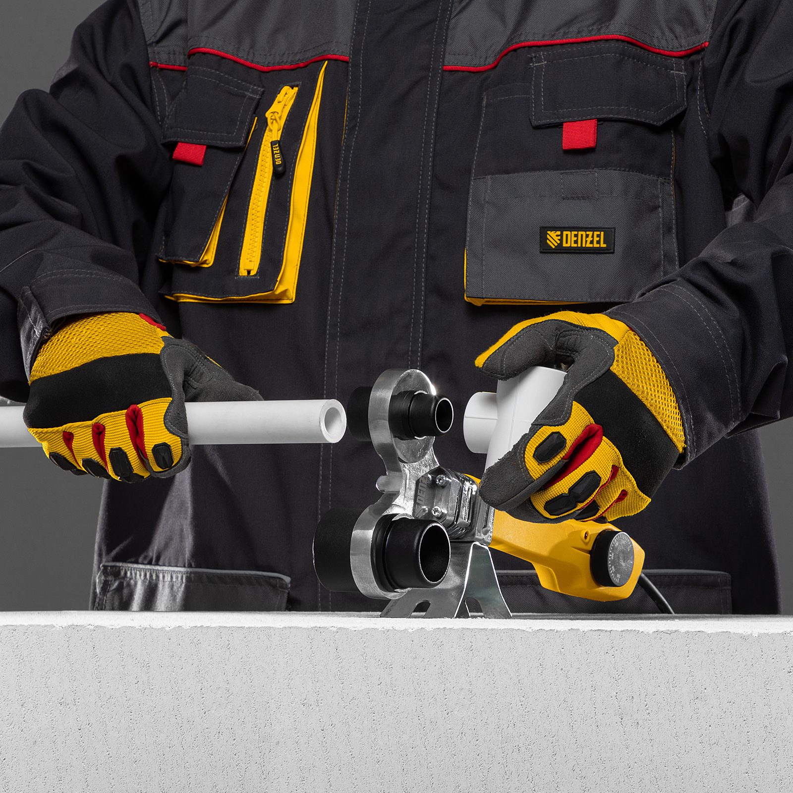 Аппарат для сварки пластиковых труб DWP-750, 750 Вт, 0-300 град, 4 насадки, 20-40 мм Denzel