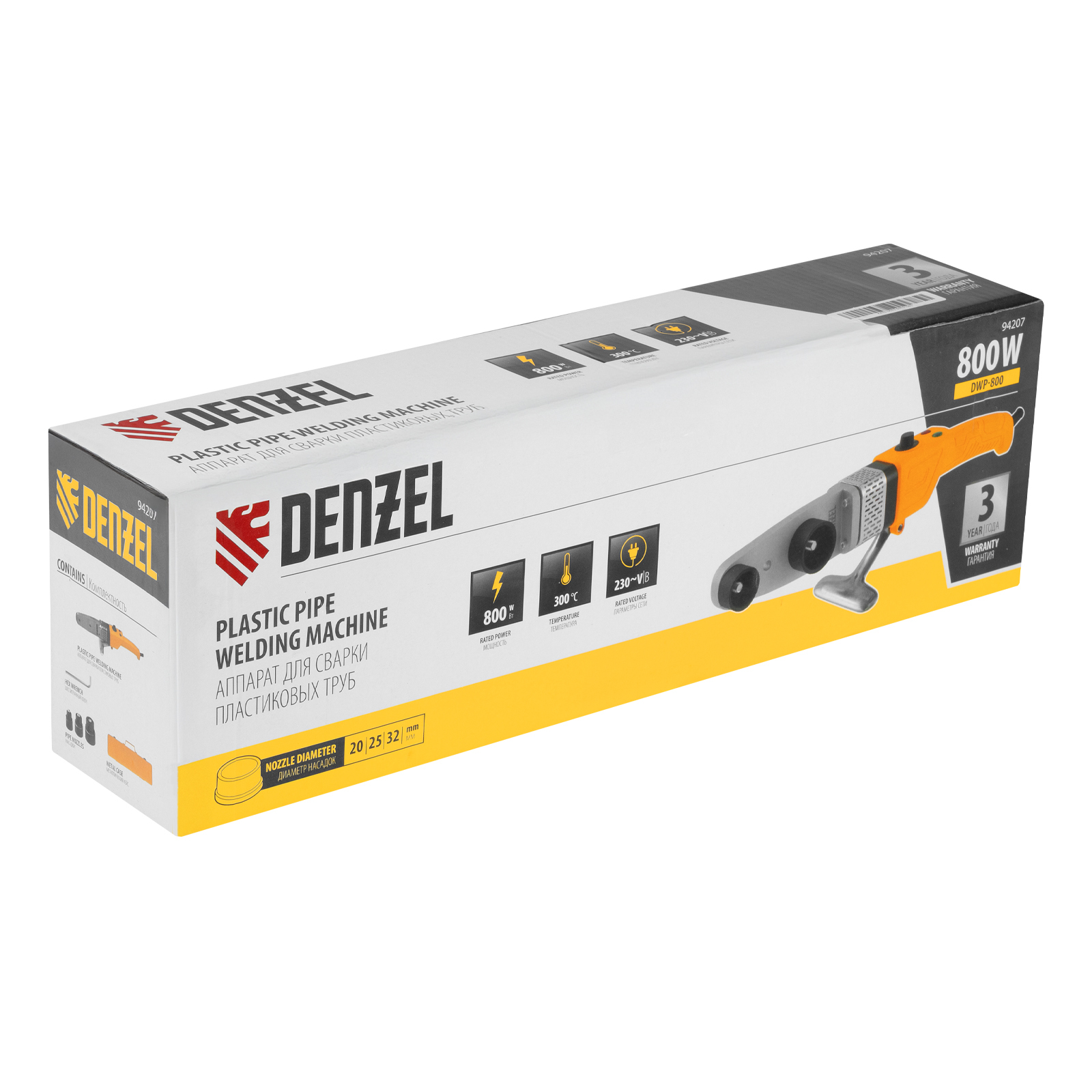 Аппарат для сварки пластиковых труб Denzel DWP-800 X-PRO 94207 мощностью 800 Вт, с комплектом насадок диаметром 20-32 мм, работает при температуре 260-300 ℃. Используется для сварки полиэтиленовых и полипропиленовых труб путем их нагрева, размягчения и последующего соединения под давлением. Оптимально подходит для самостоятельного обновления водопровода, ремонта труб, монтажа отопительной и канализационной систем в частном доме или квартире. Три сменные насадки позволяют соединять трубы диаметром 20, 25 и 32 мм.