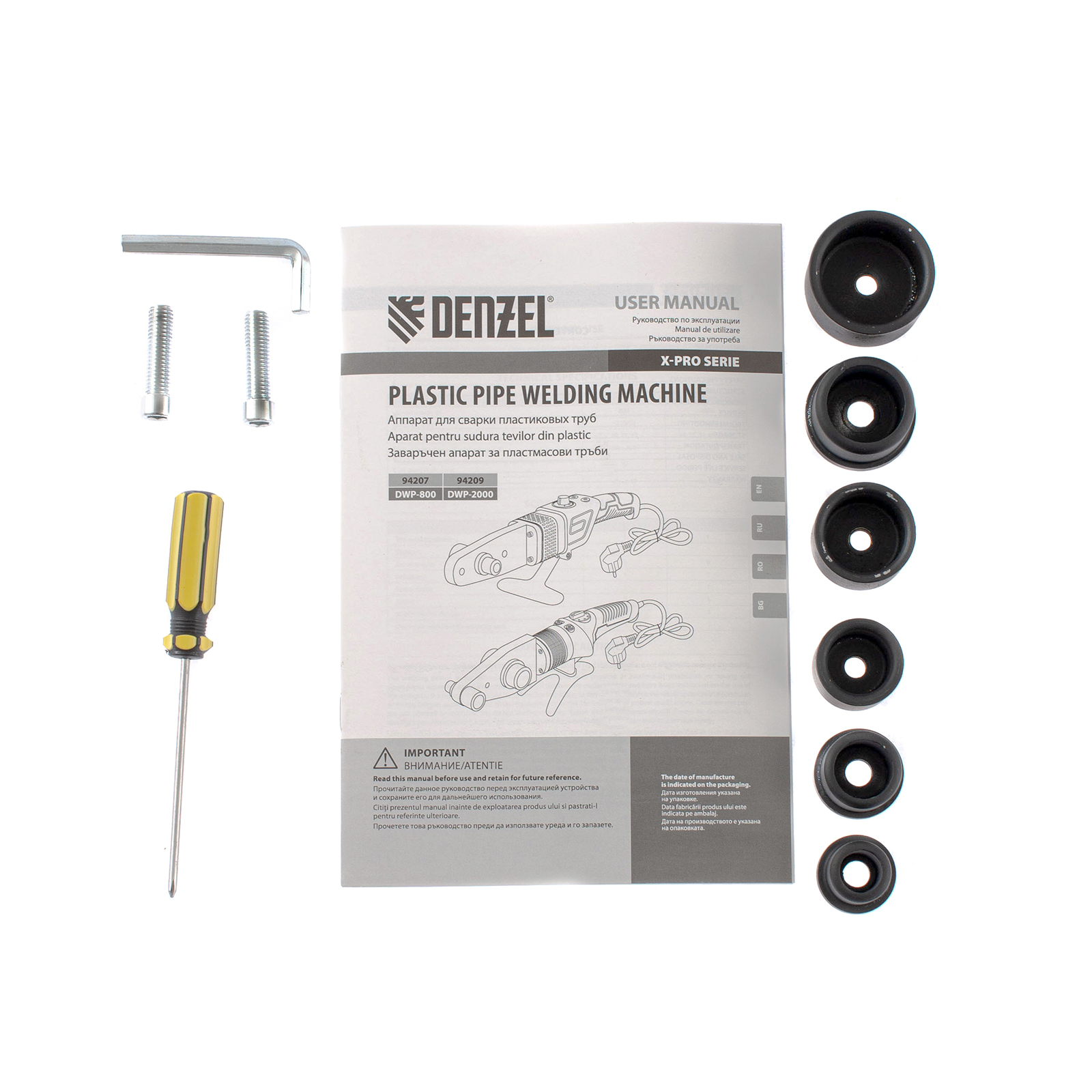Аппарат для сварки пластиковых труб DWP-800, Х-Pro, 800 Вт, 300 град, комплект насадок, 20-32 мм Denzel