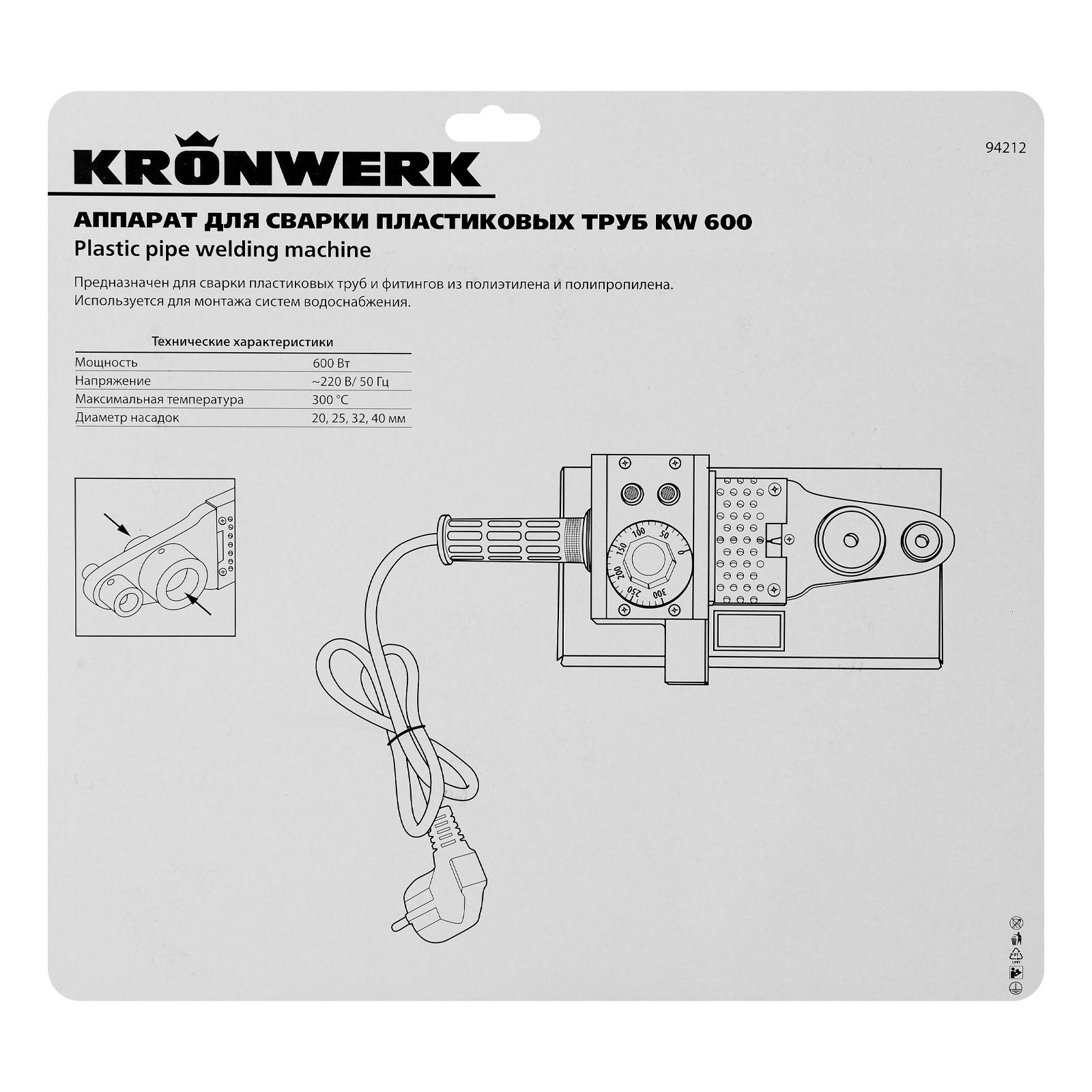 Аппарат для сварки пластиковых труб K W 600, 600 Вт, 300 °C, 20-25-32-40 мм, блистер Kronwerk