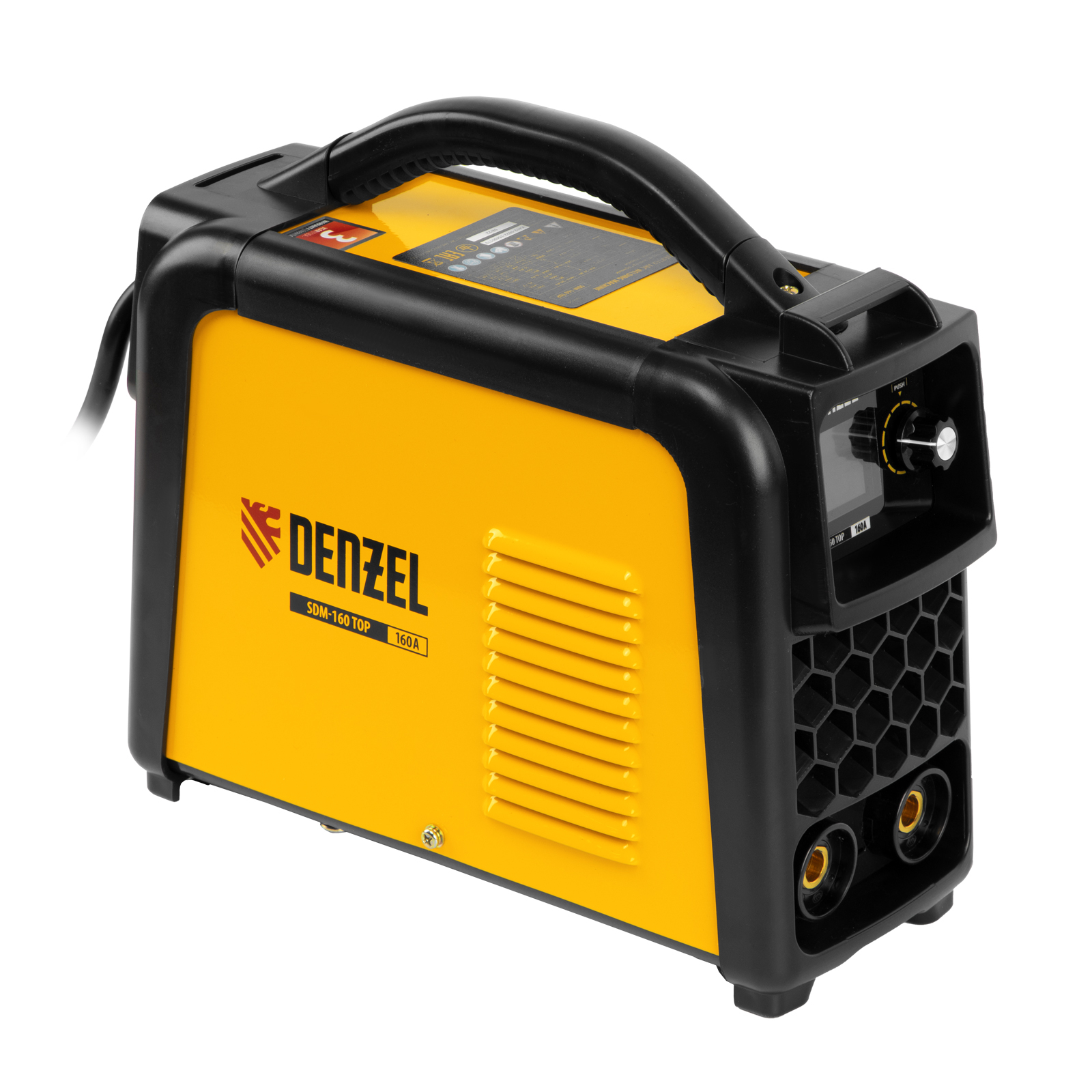 Инверторный аппарат дуговой сварки Denzel SDM-160 Top 94354 характеризуется увеличенной продолжительностью включения 80% и работает со сварочным током до 160 А. Предназначен для сварки штучными электродами диаметром до 3,2 мм изделий из низкоуглеродистых сталей в режиме MMA, а также аргонодуговой сварки неплавящимся электродом TIG LIFT, оптимальной для заготовок из чугуна и нержавеющей стали (горелка приобретается отдельно).,Основное достоинство линейки Denzel SDM — синергетическое управление, значительно облегчающее подбор оптимальных параметров сварки. Аппарат дает возможность указать толщину свариваемого металла, после чего автоматически подбирает оптимальный сварочный ток и диаметр электрода. И наоборот: достаточно установить требуемое значение сварочного тока и на дисплее отобразится минимальная рекомендованная толщина свариваемых деталей, а также диаметр электрода. Аппарат эффективно работает даже при нестабильном напряжении, предназначен для использования в профессиональной сфере и в быту.