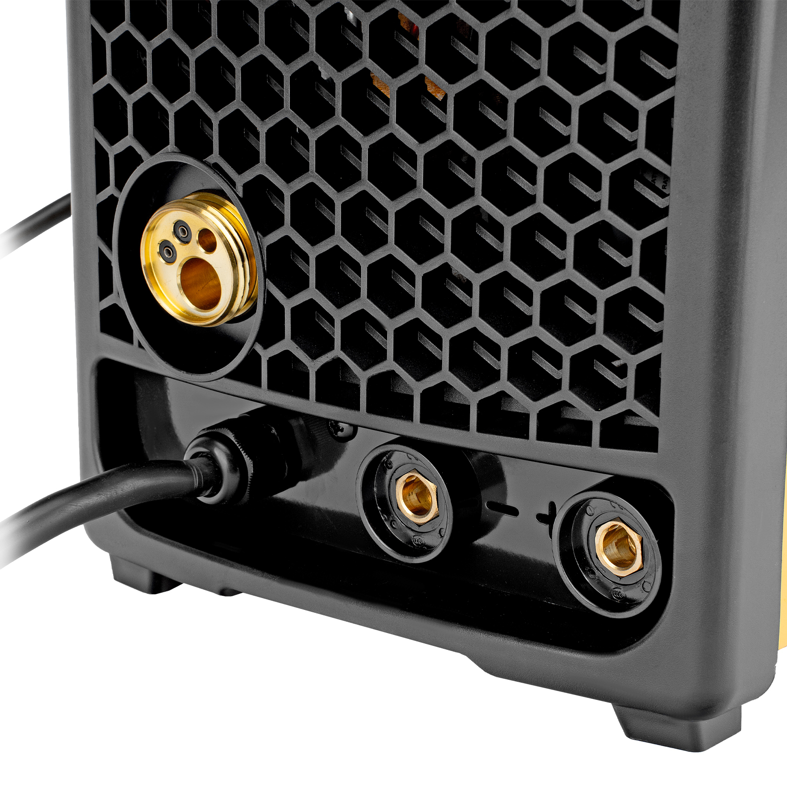 - Режим VRD для сварки MMA — работа с пониженным напряжением холостого хода обеспечивает безопасность пользователя во время перерыва или при замене электрода.