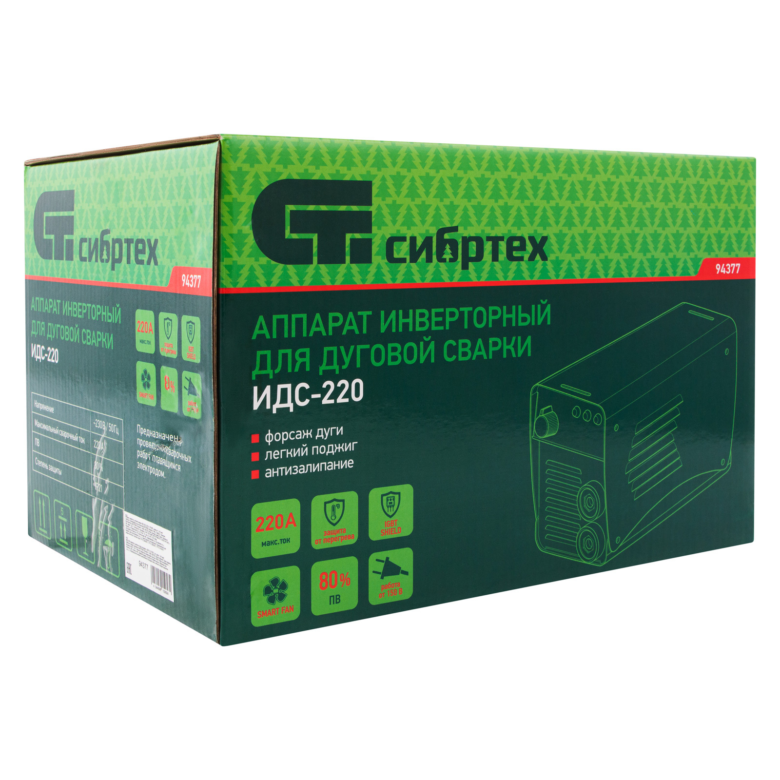 Аппарат инверторный дуговой сварки ИДС-220, 220 А, ПВ 80%, диаметр электрода 1.6-5 мм Сибртех