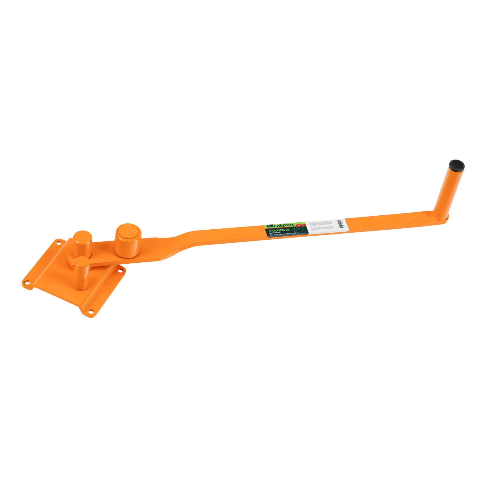<p>Роликовый арматурогиб Сибртех 18119 — ручной инструмент для сгибания арматуры диаметром до 10 мм. Пригодится частным мастерам и профессиональным строителям при армировании фундамента.</p><h2>Преимущества</h2><ul><li>Прочность — арматурогиб выдерживает интенсивное использование и подходит для полупрофессионального применения.</li><li>Надежная фиксация — в основании предусмотрены отверстия для крепления к верстаку или рабочему столу.</li><li>Эффективность — эргономичная рукоятка позволяет увеличить рычаг и работать со значительным усилием.</li><li>Небольшой вес 1,8 кг — инструмент удобно транспортировать и перемещать по рабочей зоне.</li></ul>