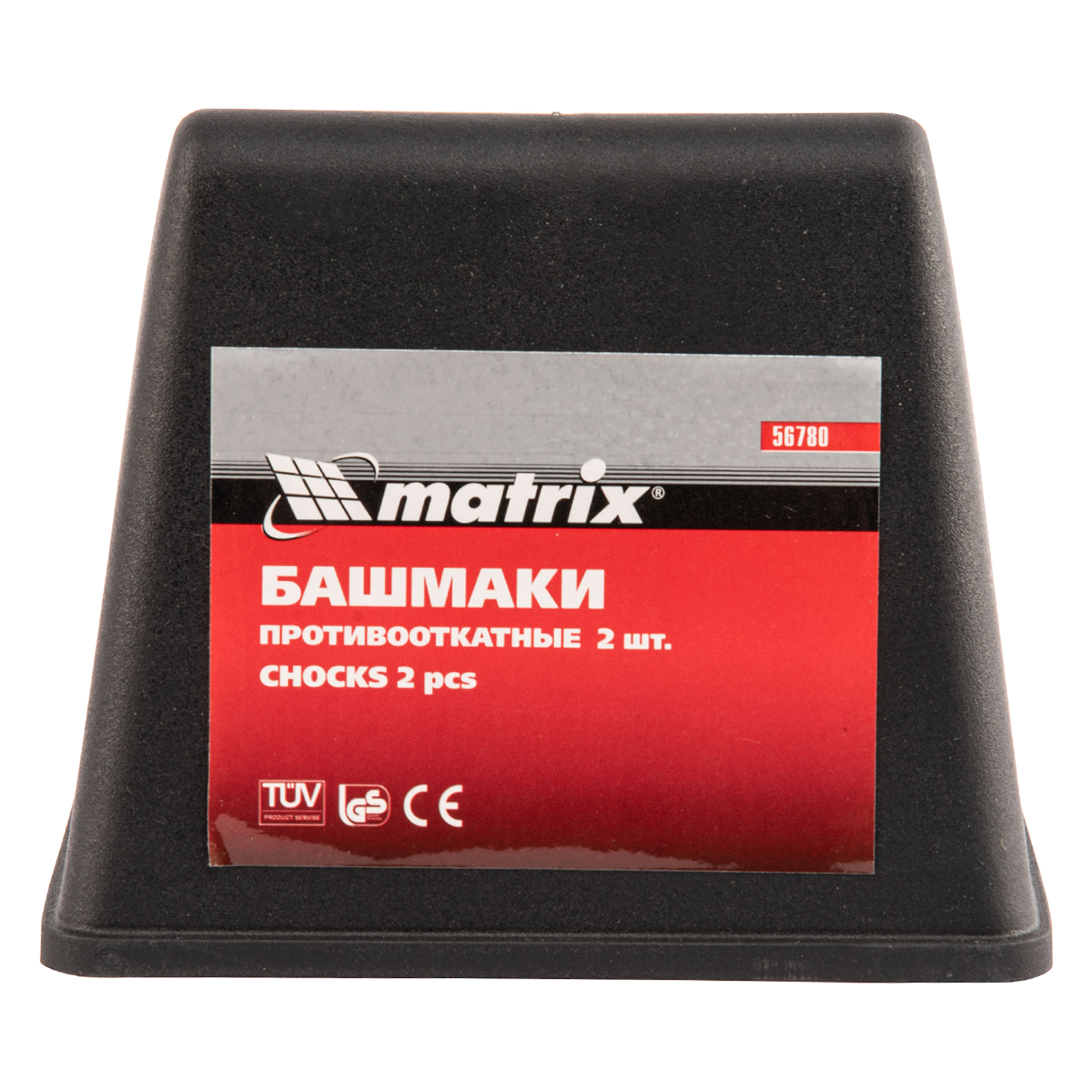 <p>Противооткатные башмаки Matrix 56780 поставляются в комплекте из 2 шт. и предназначены для установки под колеса легкового автомобиля или прицепа. Башмаки, или упоры, не дают транспортному средству скатиться со склона или сместиться во время подъема на домкрате. Пригодятся автовладельцам, а также будут полезны мастерам по ремонту авто.</p><h2>Преимущества</h2><ul><li>Надежное сцепление с колесами — упоры имеют рифленую поверхность.</li><li>Водостойкость — пластиковые упоры не боятся осадков, загрязнения легко можно смыть.</li><li>Дополнительные возможности — благодаря отверстиям в корпусе башмаки можно закрепить на поверхности и использовать для ограничения въезда на парковочное место.</li></ul>