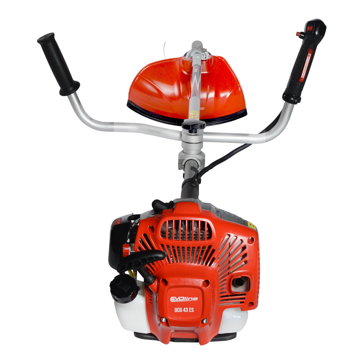 Бензиновая мотокоса EVOline BCG 43 ES – это мощный садовый инструмент, предназначенный для работы с различными типами растений и газонов на придомовой территории, а также сухой и жесткой травы в поле. Особенностью данной модели является более мощный 2-х тактный двигатель внутреннего сгорания мощностью 1,7 л.с. с системой легкого запуска Easy Start, который обеспечивает оператору полную свободу передвижения во время эксплуатации инструмента.