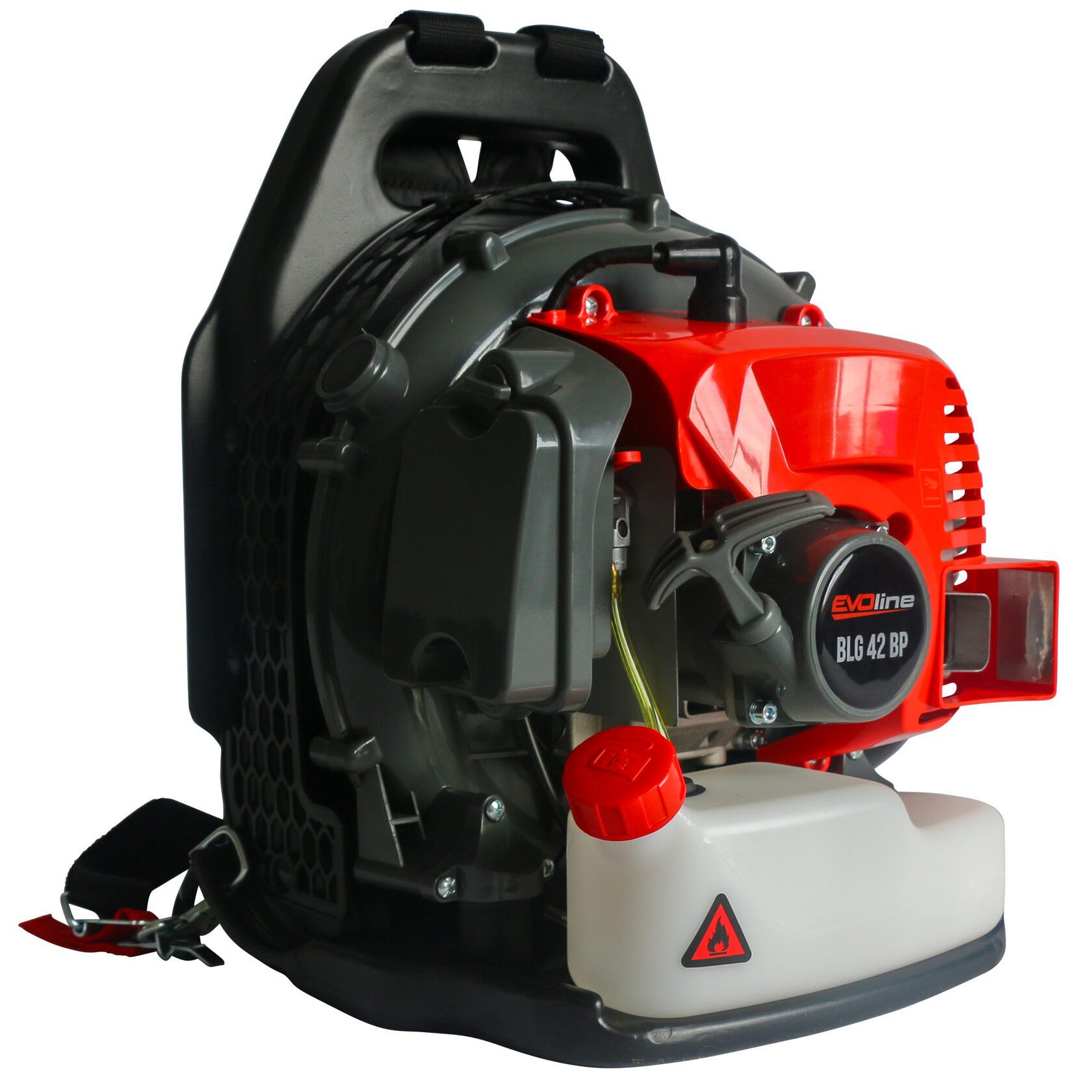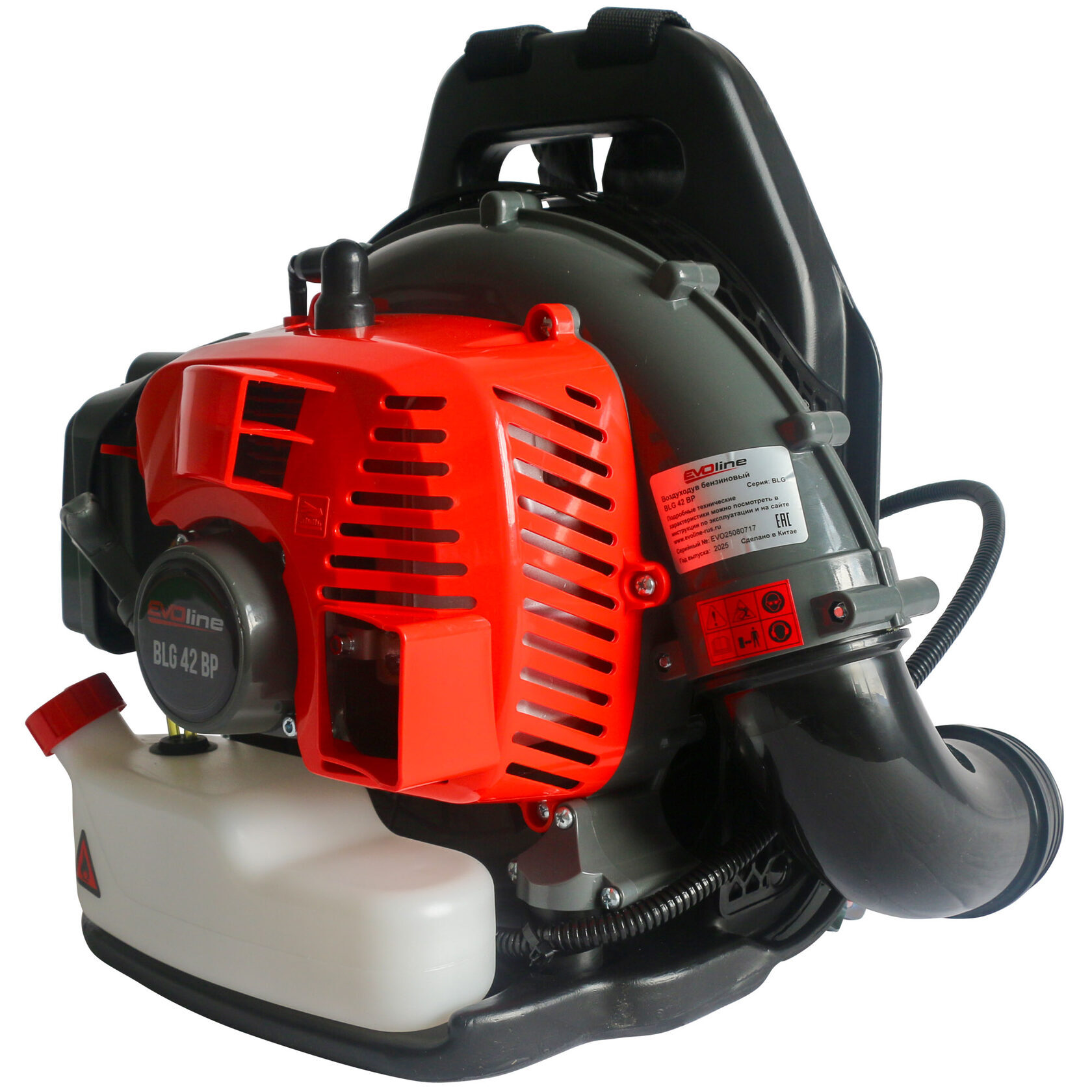 Двигатель воздуходув EVOline BLG 42 BP установлен на ранцевое основание, что позволяет снять нагрузку с рук оператора, а вместительный топливный бак дает возможность работать остановки долгое время.