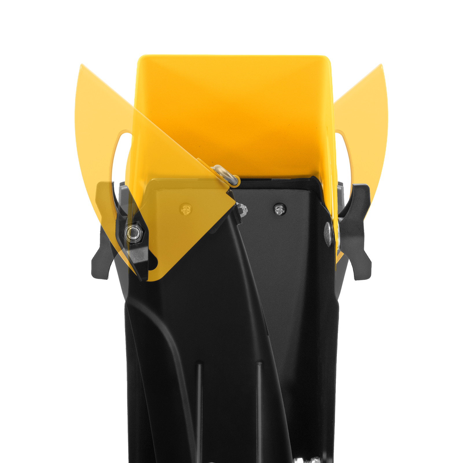 - Комфортная работа — рычаг поворота желоба позволяет легко выбрать желаемое направление выброса снега.