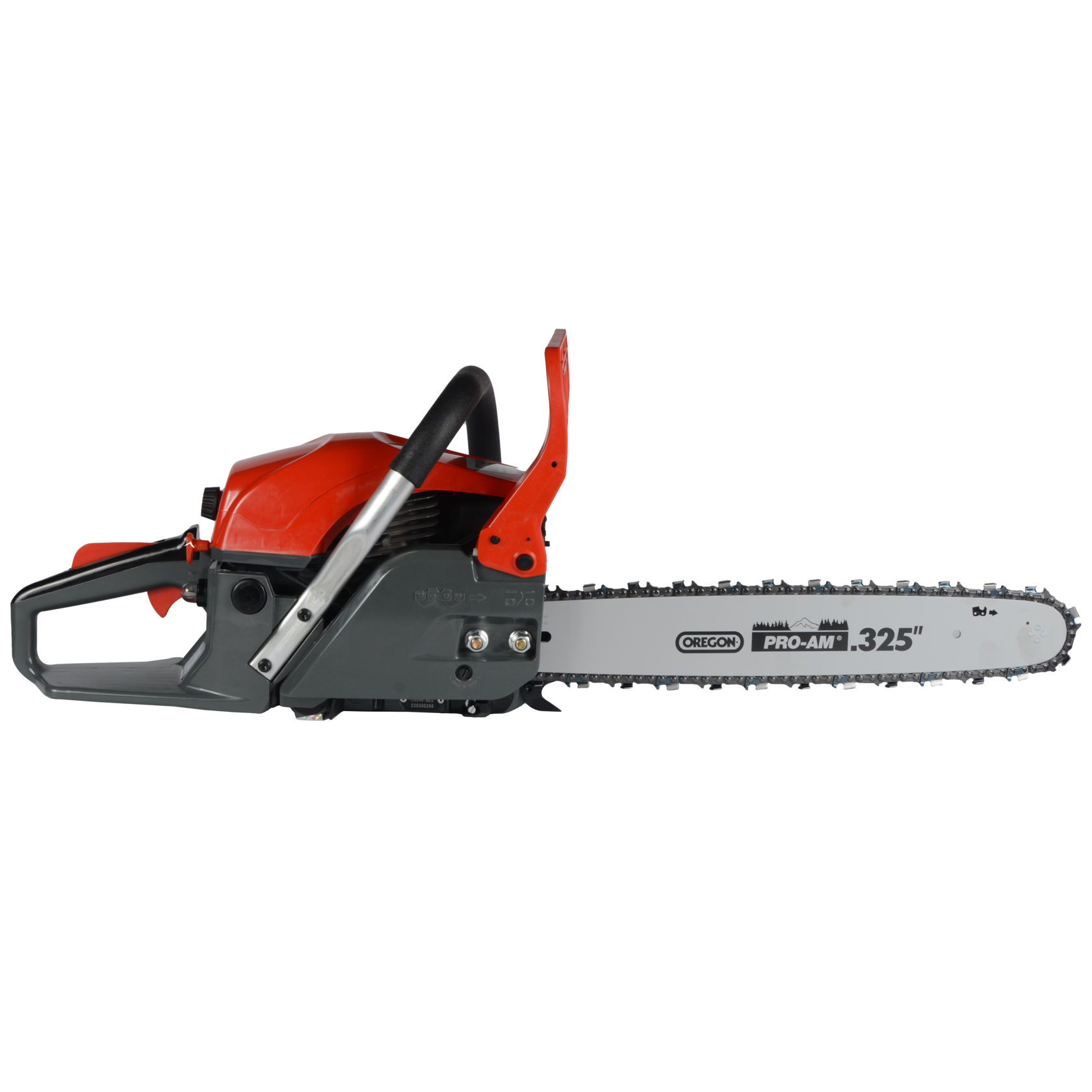 Бензиновая цепная пила EVOline CSG 46-16 ES характеризуется мощностью в 2,4 л.с. и оснащена надежным 2-тактный двигателем (45,6 куб.см) последнего поколения. В комплект CSG 46-16ES входят шина 16 дюймов (41 см) и пильная цепь от американской компании OREGON, чехол для пильной шины, набор инструментов в фирменном чехле и комбинированная канистра для топливной смеси.