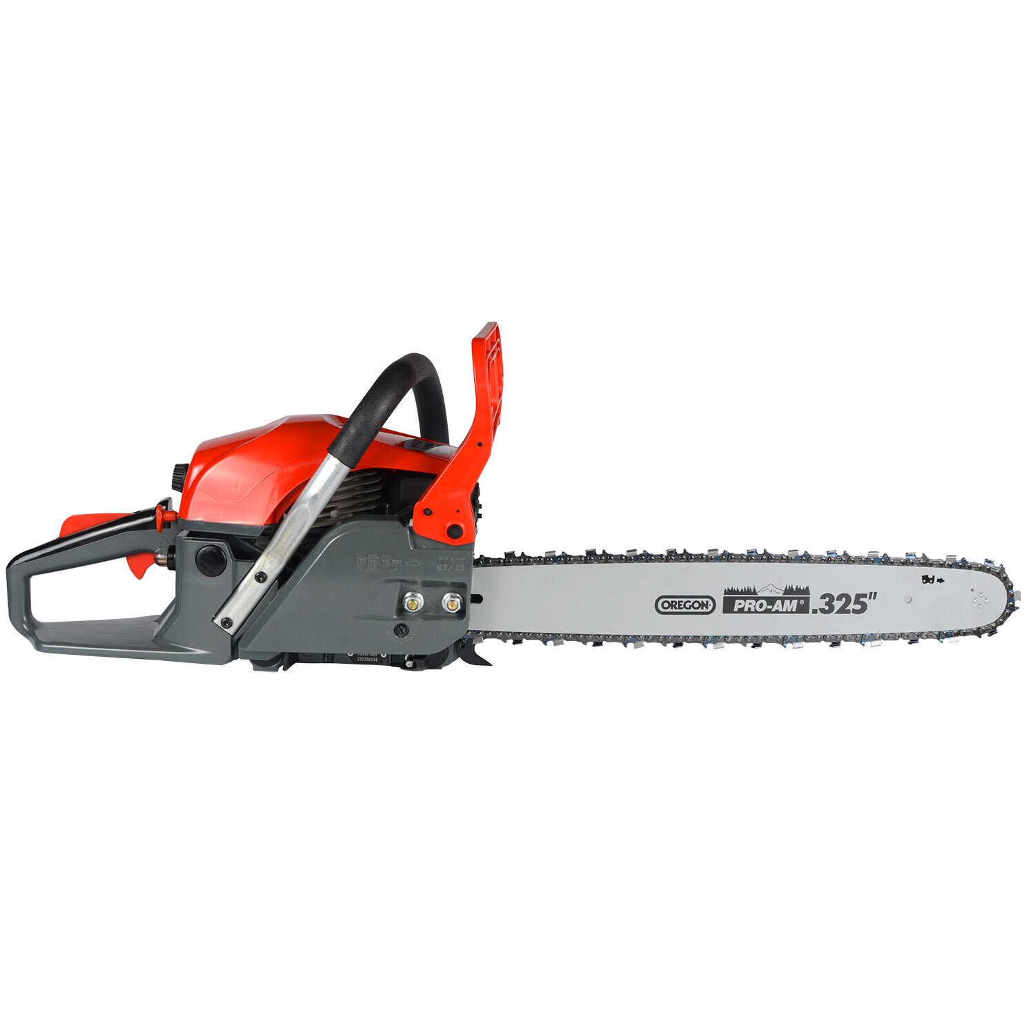 Бензиновая цепная пила EVOline CSG 46-18 ES характеризуется мощностью в 2,4 л.с. и оснащена надежным 2-тактный двигателем (45,6 куб.см) последнего поколения. В комплект CSG 46-18ES входят шина 18 дюймов (46 см) и пильная цепь от американской компании OREGON, чехол для пильной шины, набор инструментов в фирменном чехле и комбинированная канистра для топливной смеси.