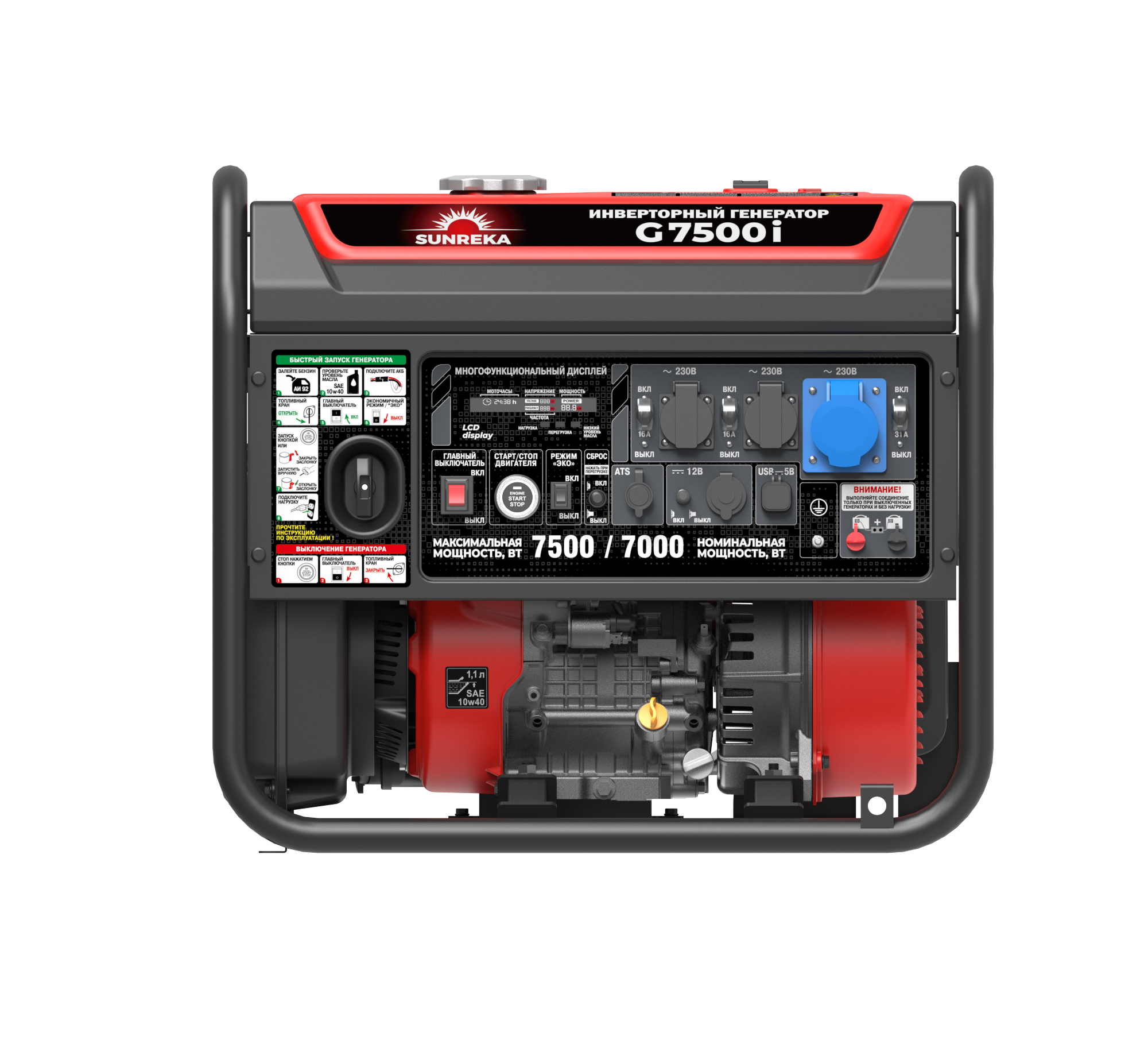 Генератор G7500i оснащен всеми необходимыми функциями безопасности, такие как защита от короткого замыкания, перегрузки, перепадов напряжения и низкого уровня масла, что обеспечивает безопасную эксплуатацию.