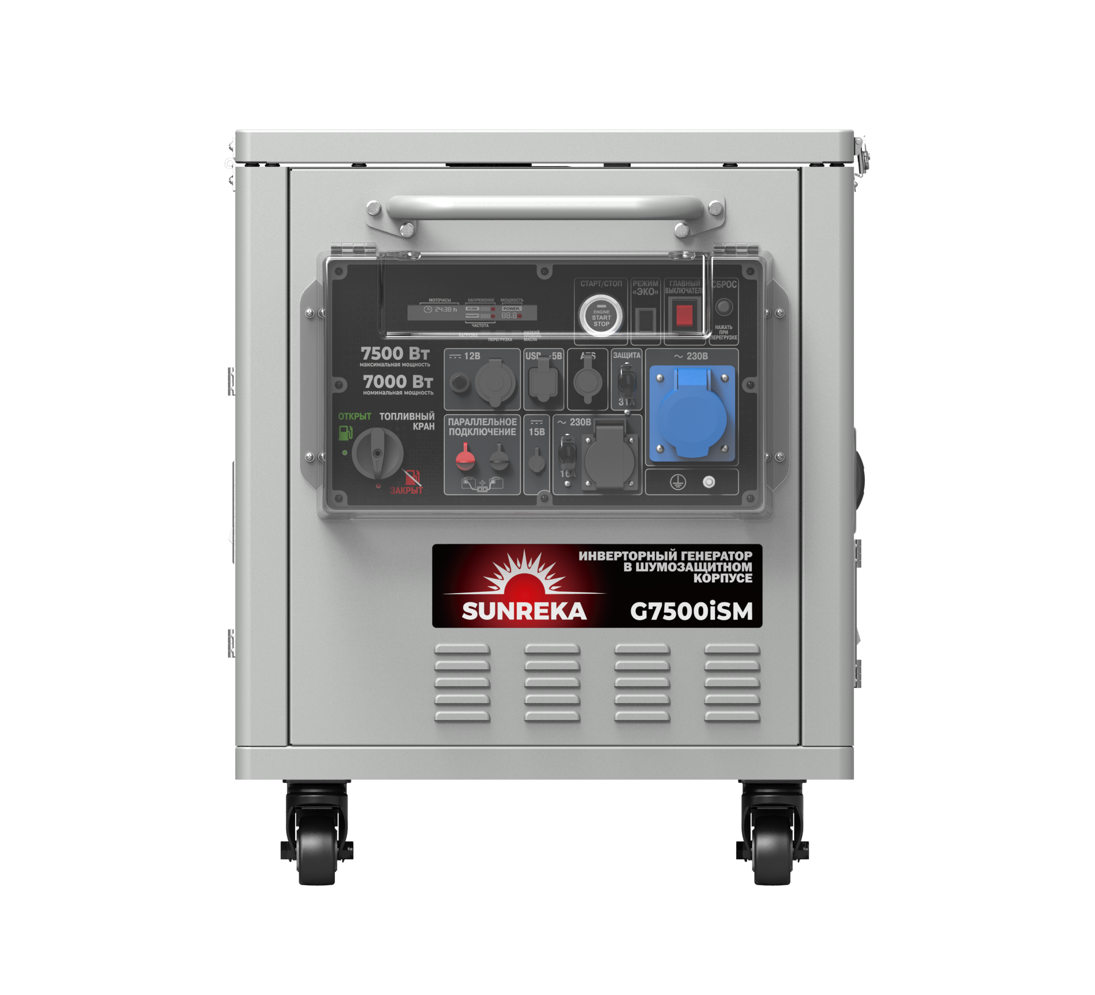 SUNREKA G7500iSM – это защищенный тихий бензиновый инверторный генератор в стальном корпусе из части ассортимента наиболее технологичных и высокопроизводительных решений.