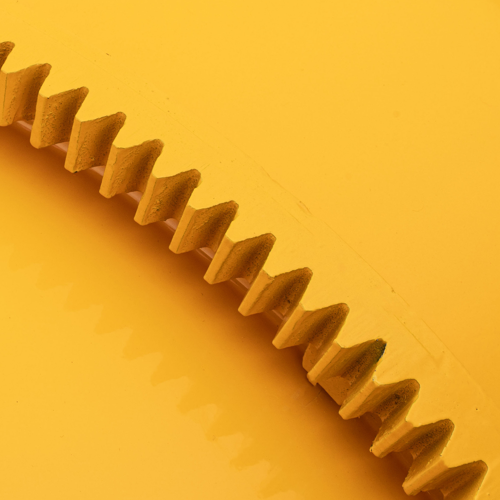 - Прочность — шестерня и венец сделаны из чугуна, в конструкции венца нет ослабляющих сквозных отверстий, т.к. он крепится к барабану через проушины, вынесенные за его тело.