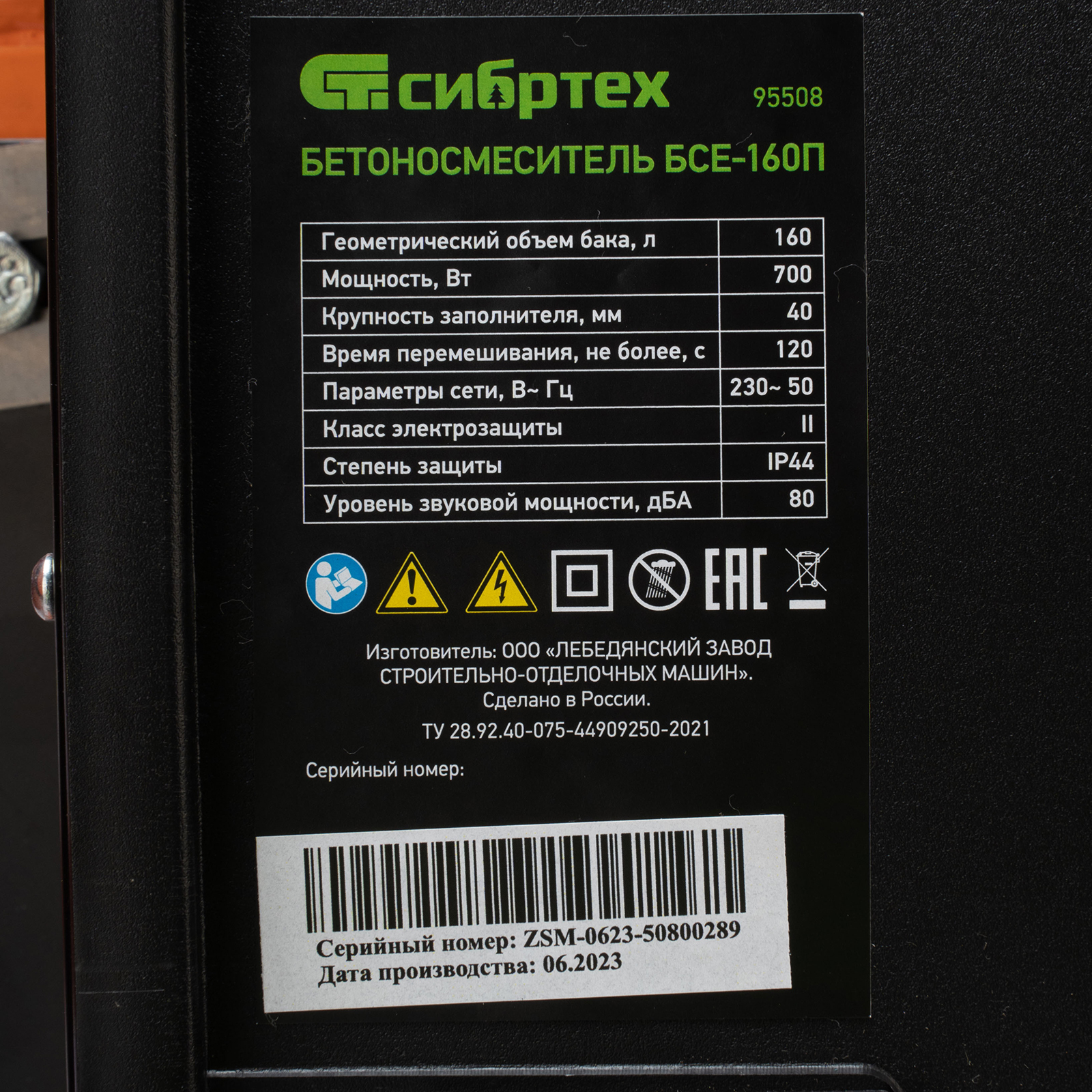 Бетоносмеситель БСЕ-160П, 160 л, 700 Вт, полиамидный венец Сибртех