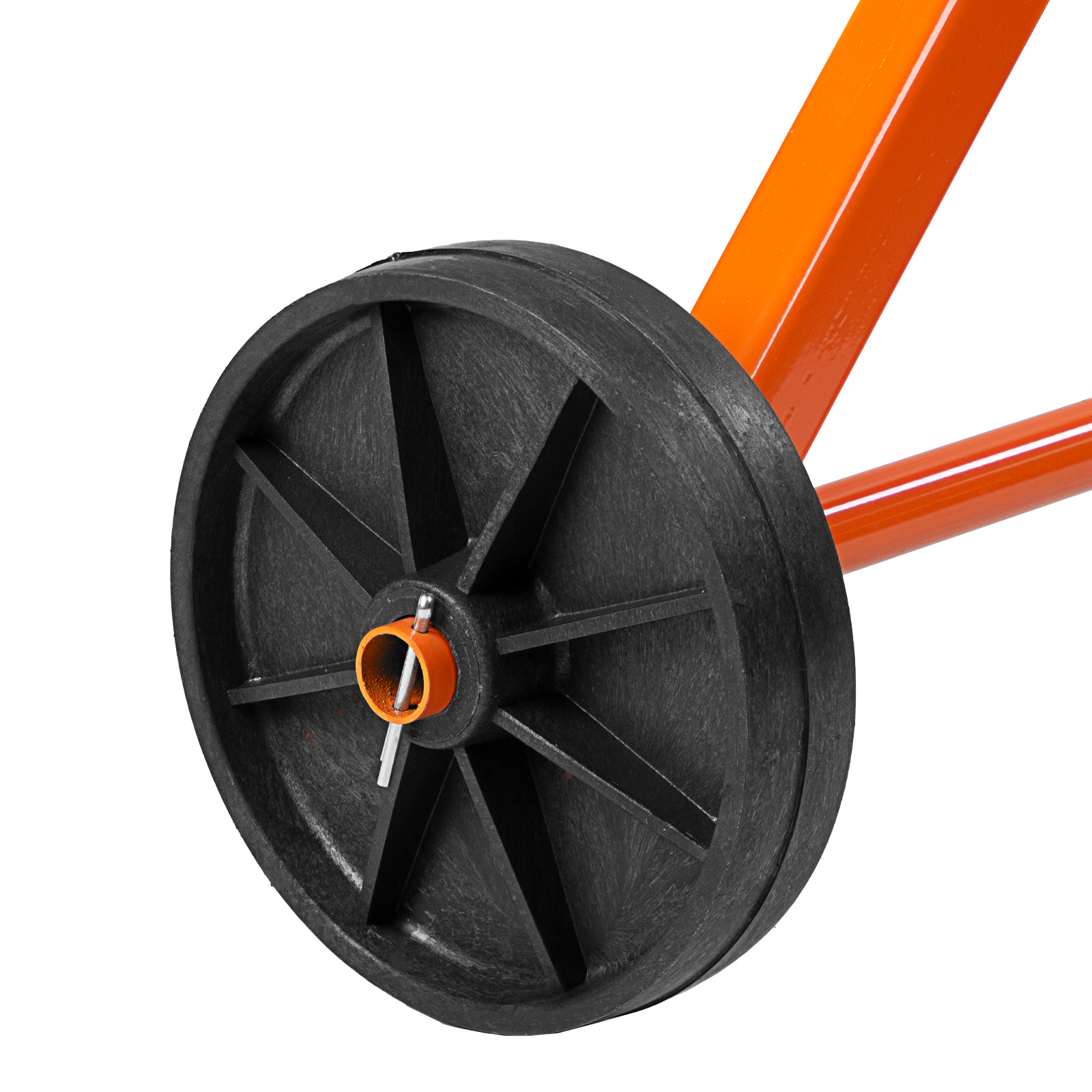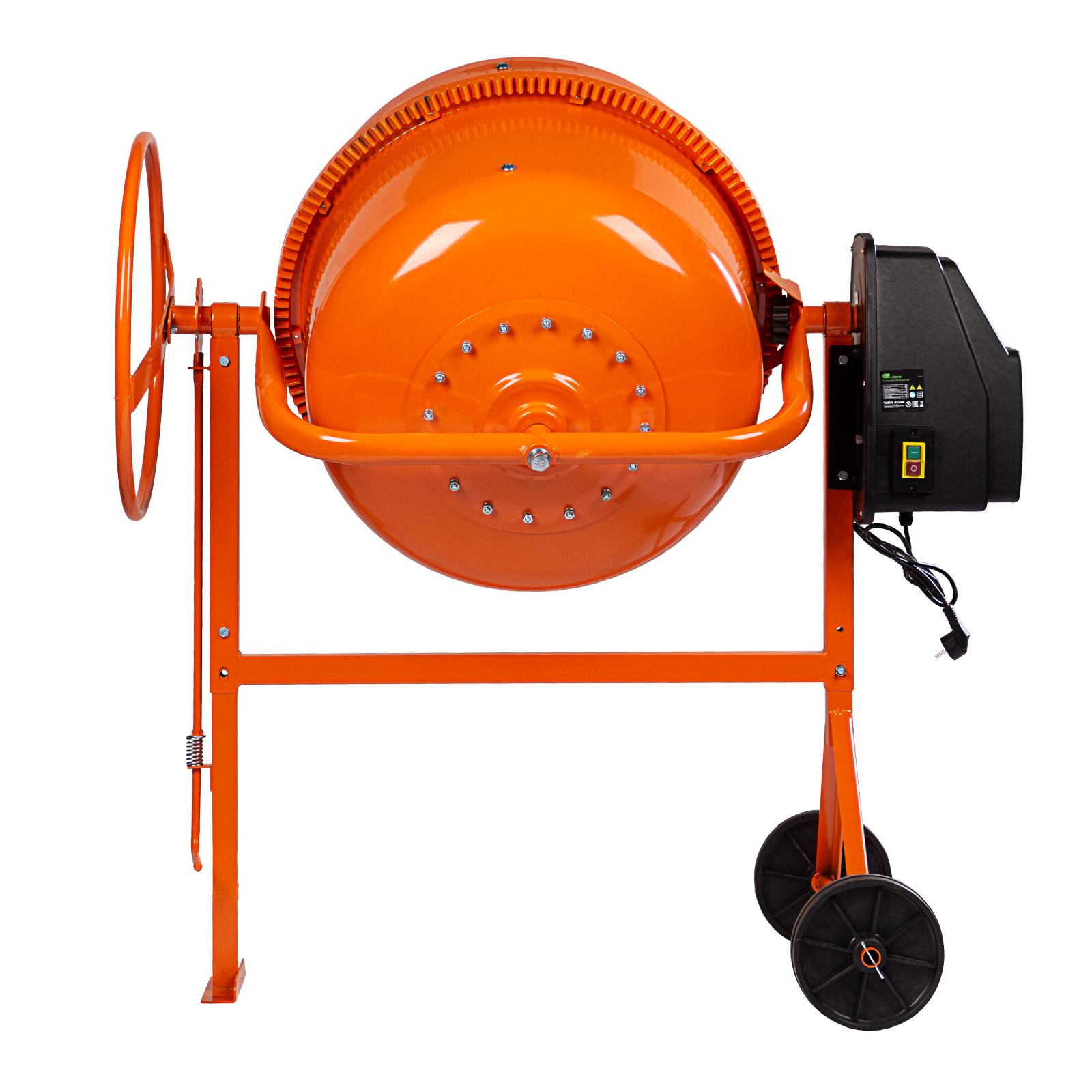 - Мобильность — колеса диаметром 20,5 см позволяют легко перевозить бетоносмеситель даже на объектах со сложным рельефом местности.