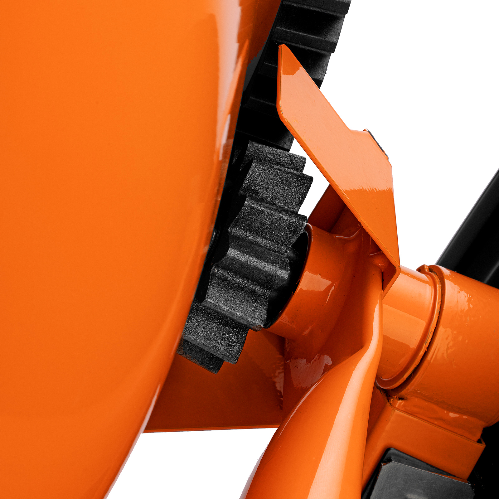 - Удобная загрузка и выгрузка смеси — барабан легко фиксируется в наклонном положении при помощи педали.