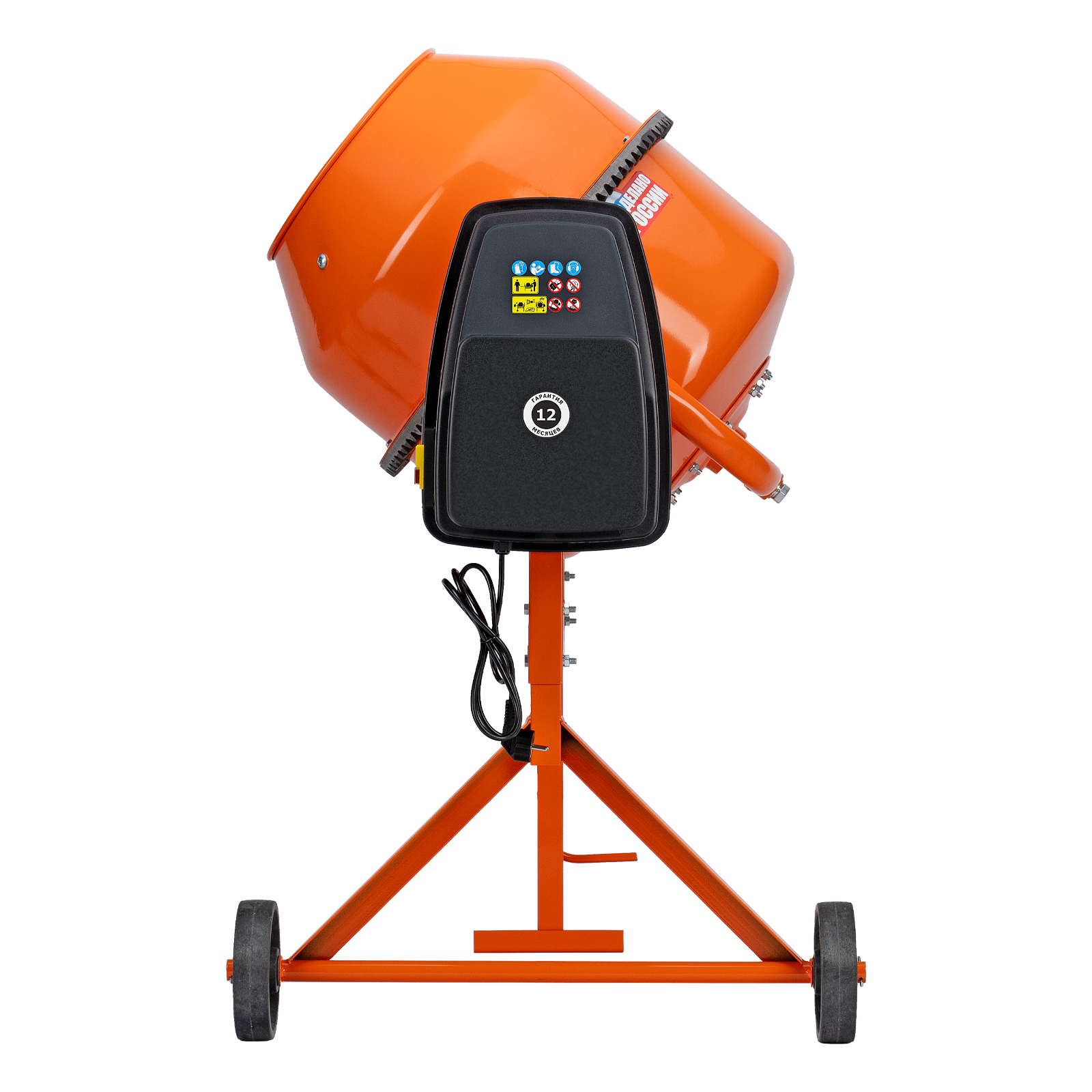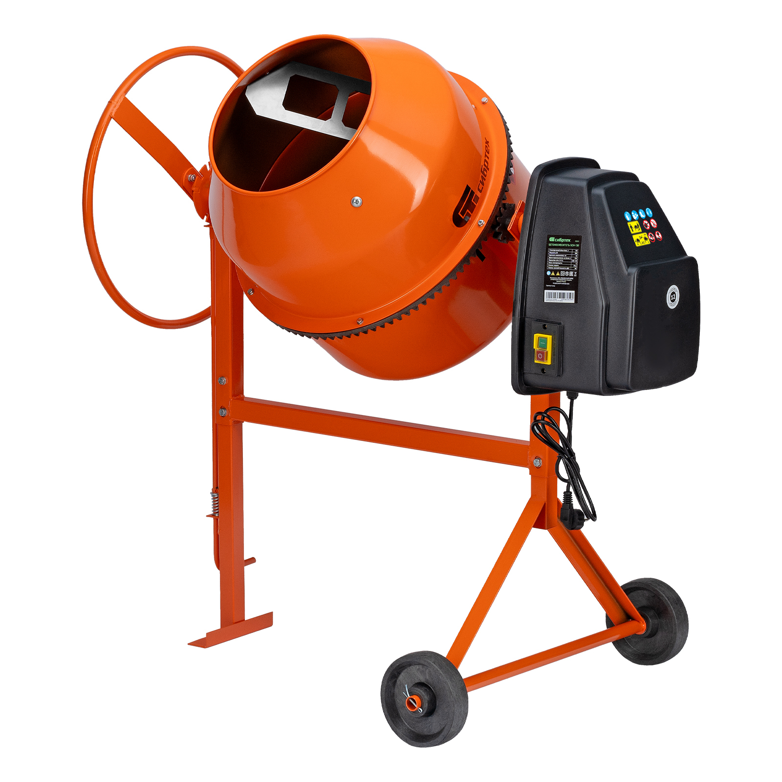 Двигатель мощностью 500 Вт обеспечивает высокую производительность, при этом не создает значительной нагрузки на электросеть. Бетоносмеситель пригодится для проведения строительных работ небольшого объема.