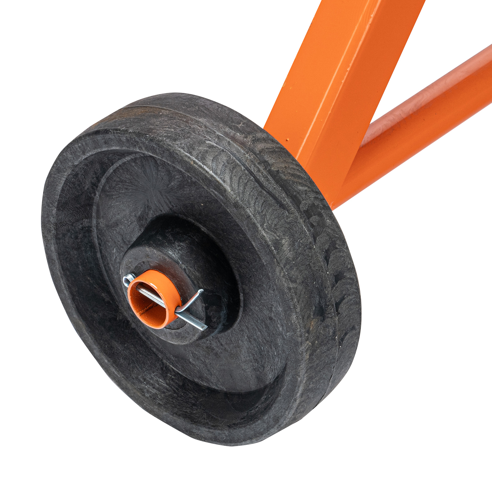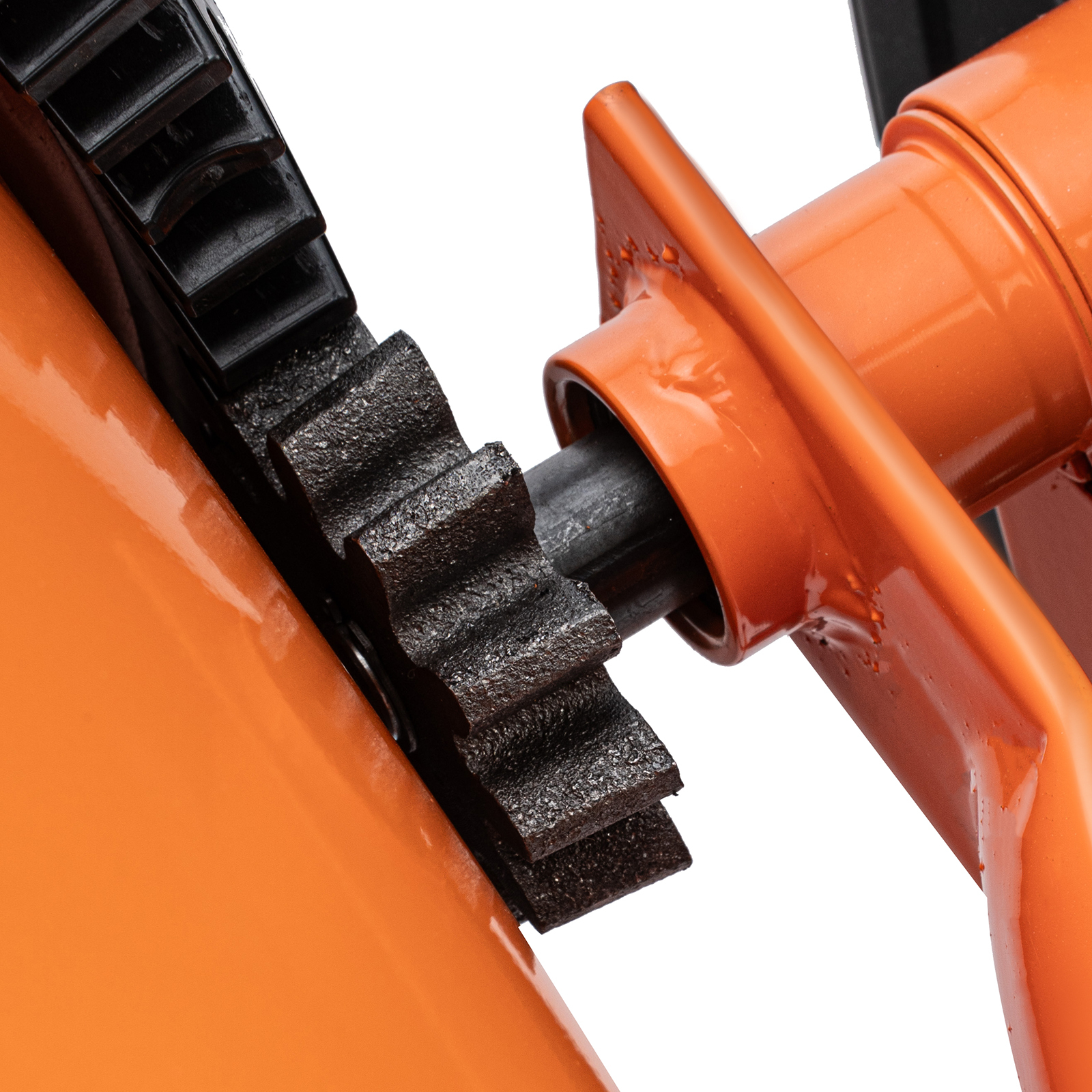- Удобная загрузка и выгрузка смеси — барабан наклоняется при помощи маховика и легко фиксируется в нужном положении.