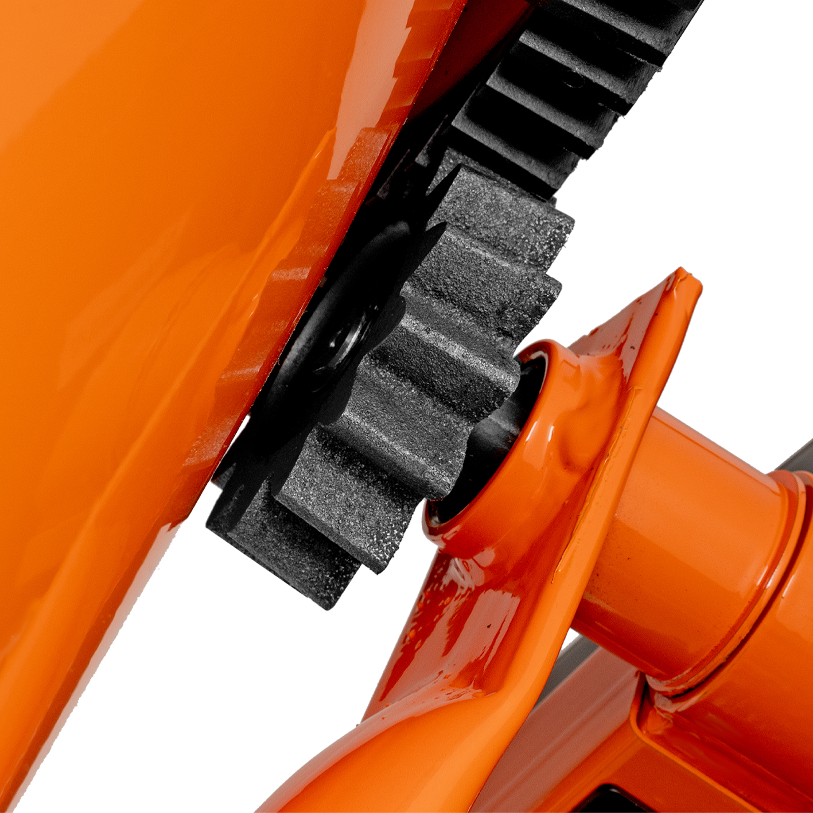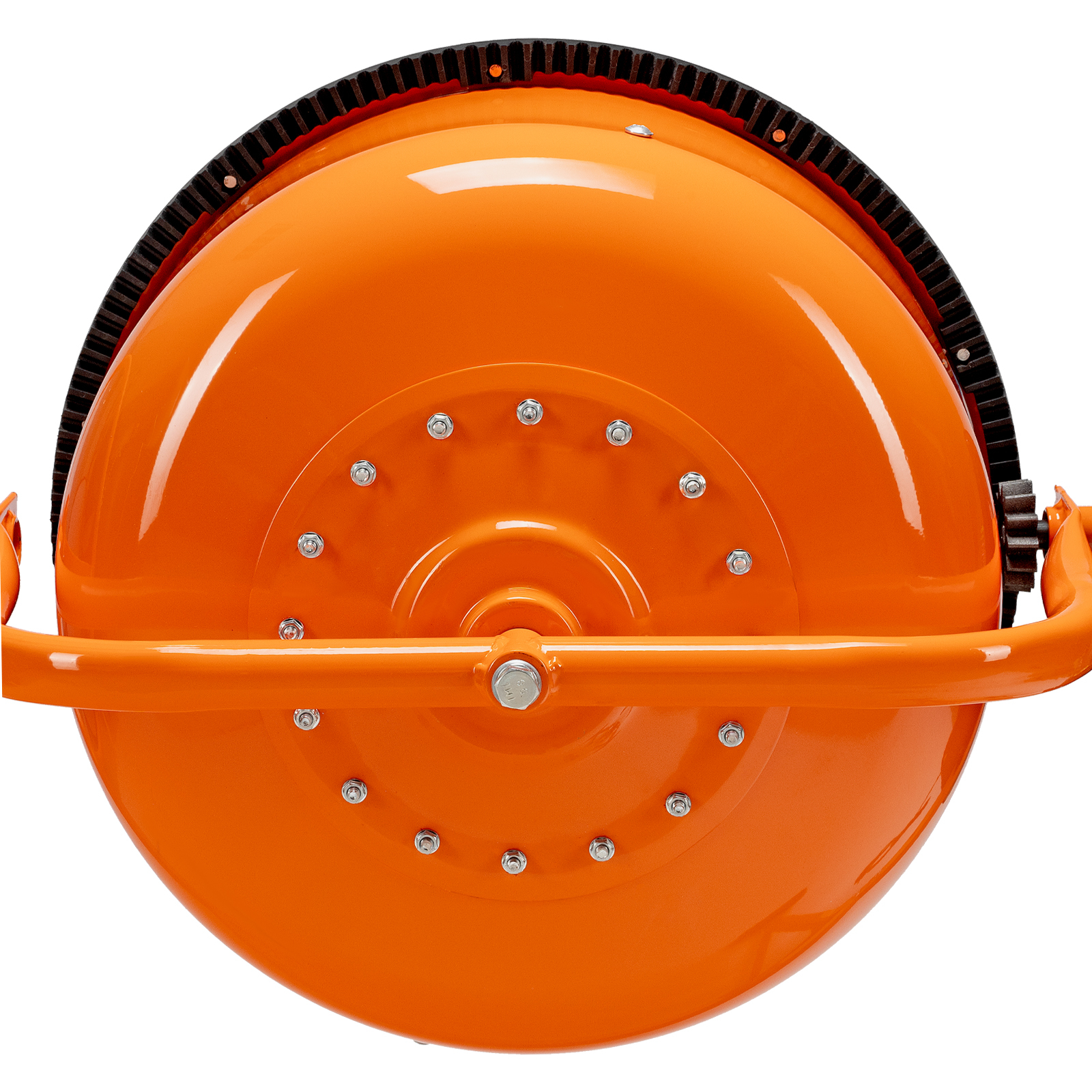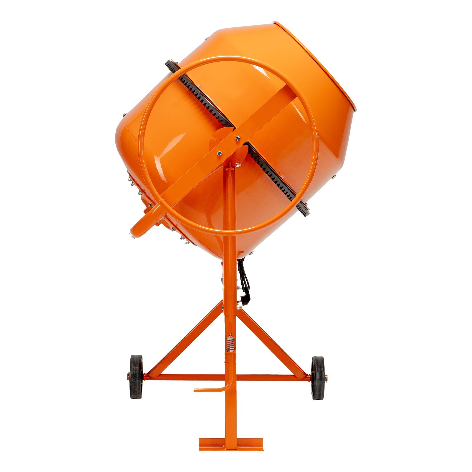 - Удобная загрузка и выгрузка смеси — барабан наклоняется при помощи маховика и легко фиксируется в нужном положении.