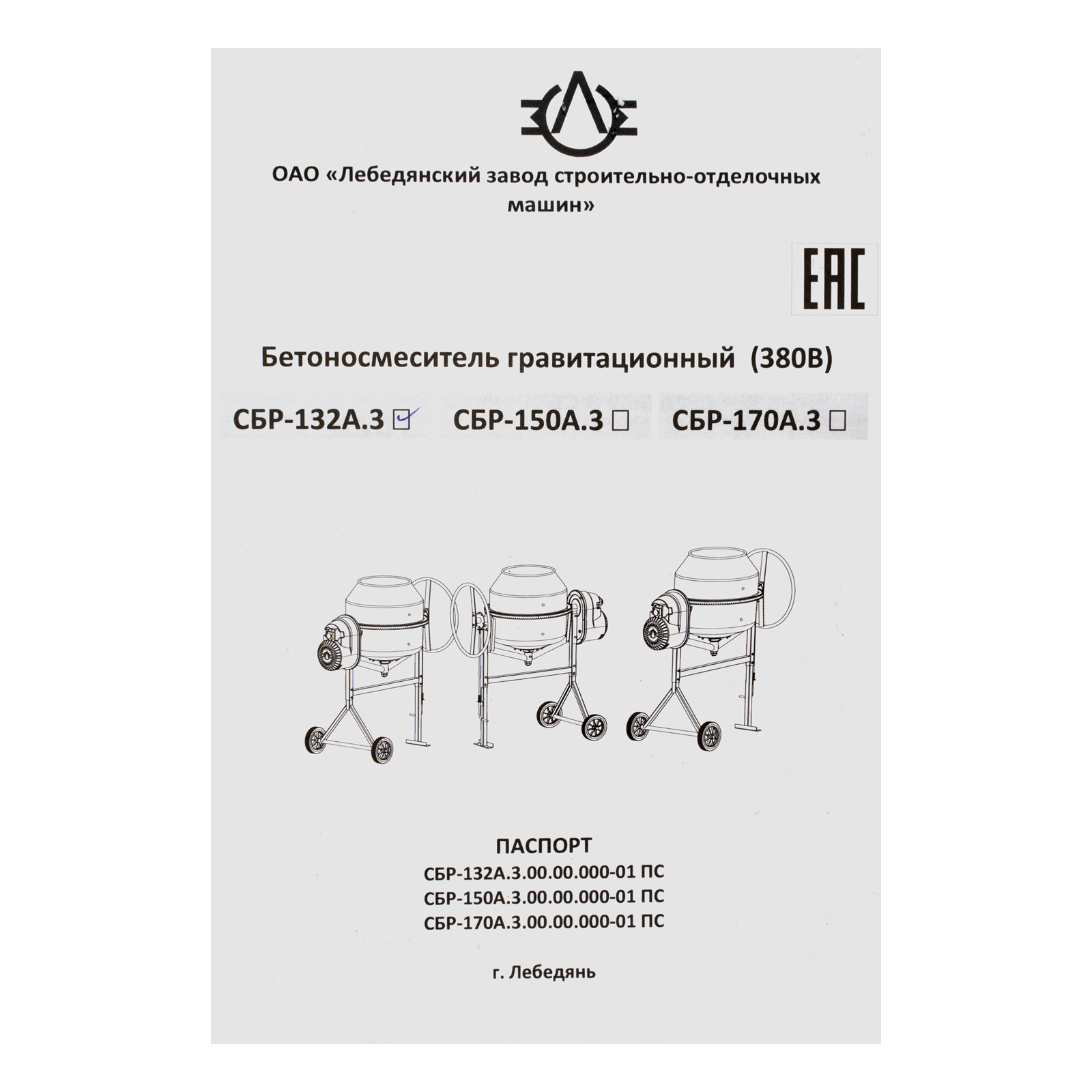 Бетоносмеситель СБР-132А.3-01, 132 л, 1 кВт, 380 В