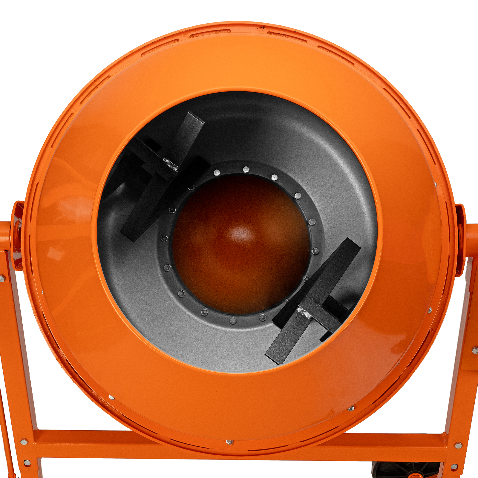 - Дозированная подача смеси — барабан наклоняется при помощи специального маховика и педального узла.