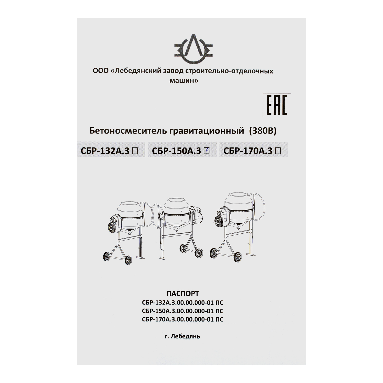 Бетоносмеситель СБР-150А.3-01, 150 л, 1 кВт, 380 В