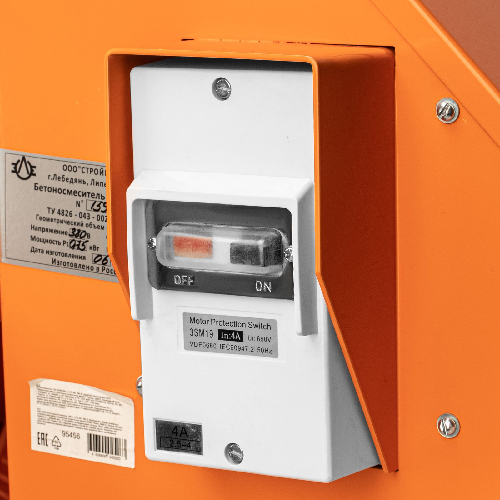 Бетоносмеситель СБР-260В 95456 мощностью 0,75 кВт, с редуктором и баком объемом 260 л, работает от сети 380 В и предназначен для приготовления строительных смесей и растворов, в том числе содержащих крупные фракции диаметром до 70 мм. Используется для выполнения работ по заливке фундамента и полов, укладке плитки и кирпича. Подходит для использования в помещении или на даче, т. к. уровень шума составляет всего 80 дБ. Бетоносмеситель производит до 150 л смеси за один замес, выдерживает интенсивную безостановочную работу и имеет увеличенный ресурс 3000 часов, поэтому подходит для коммерческого использования.