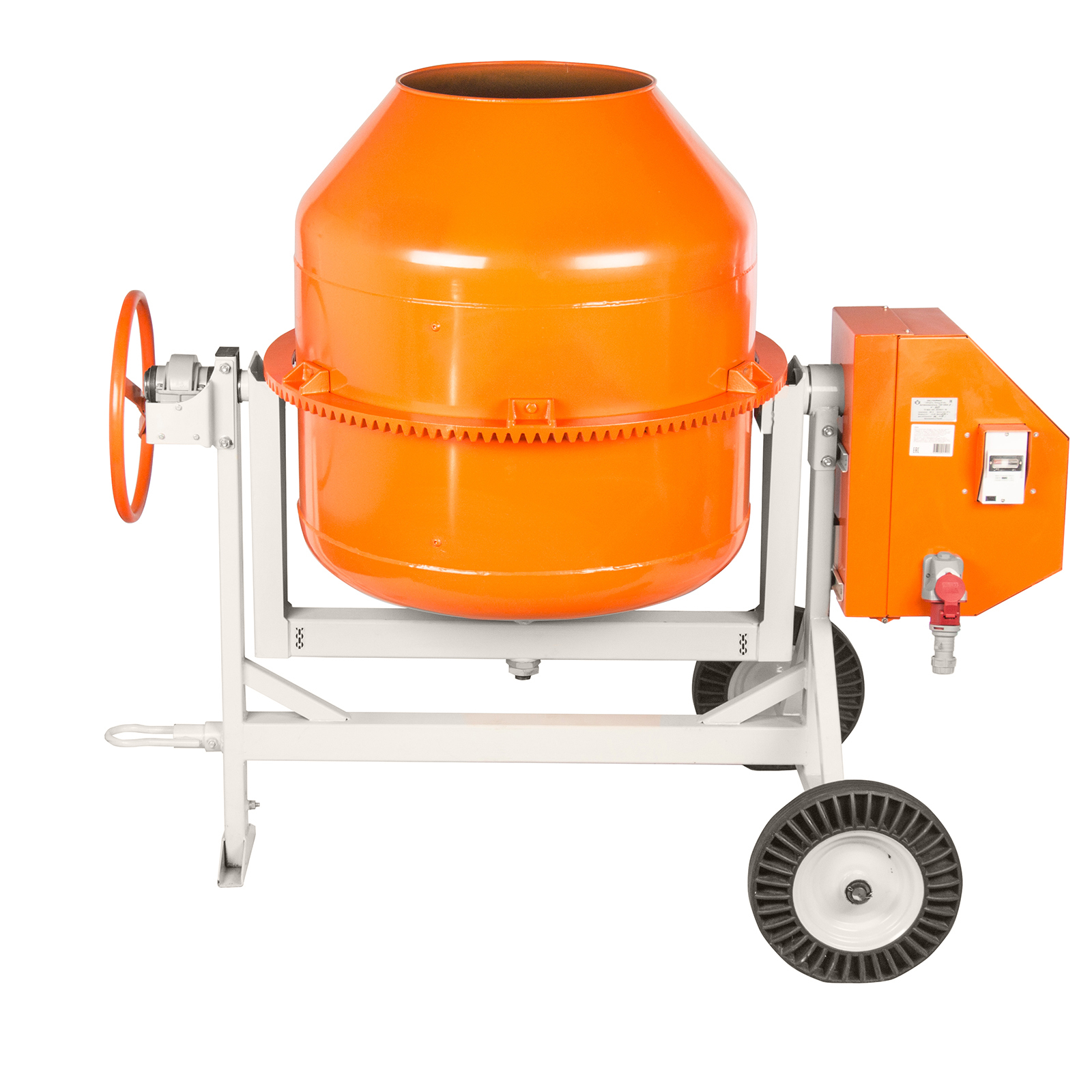 - Простое управление — удобный механизм опрокидывания и фиксации наклона барабана упрощает загрузку, перемешивание и выгрузку смеси.