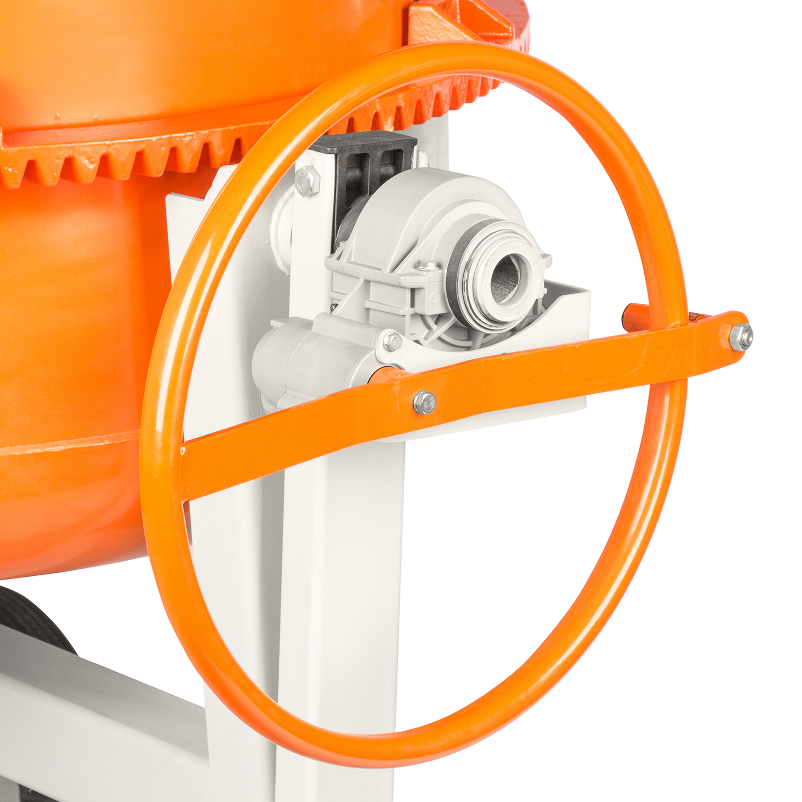 - Устойчивость — металлическая ножка с упором не дает бетоносмесителю опрокинуться во время работы.