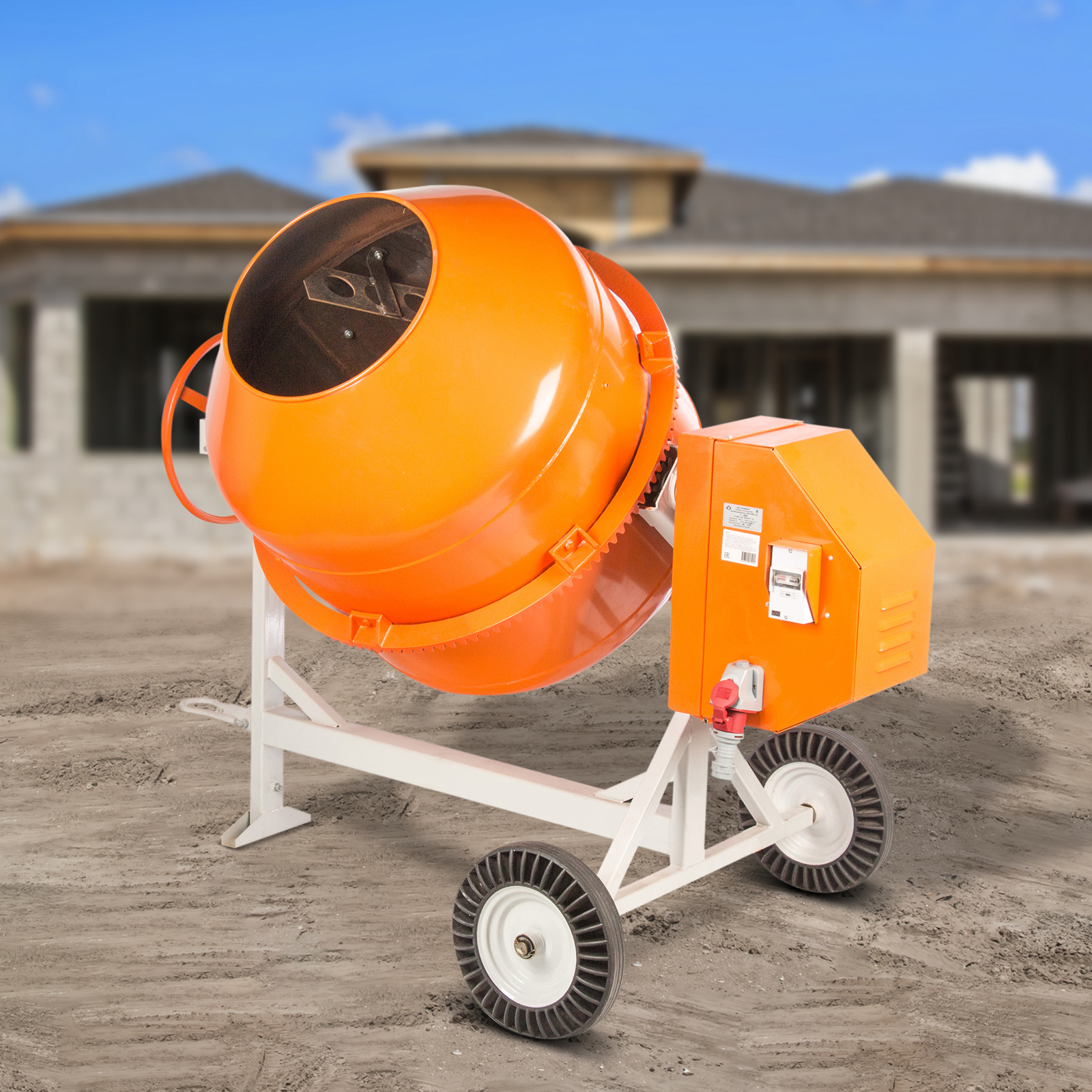 - Мобильность — благодаря двум большим колесам бетономешалку легко перемещать по строительной площадке.