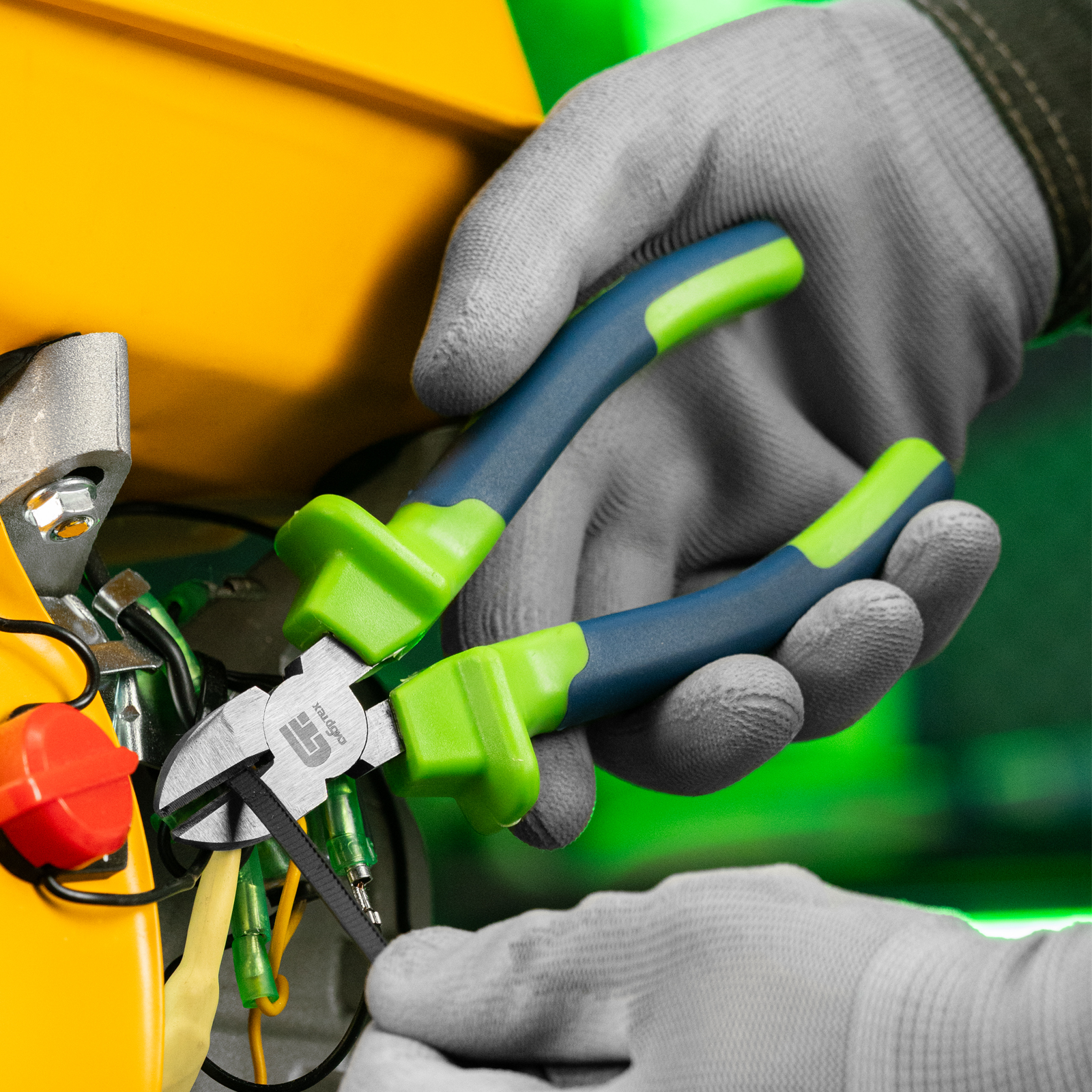 - Безопасная работа — благодаря широким ограничительным выступам на рукоятках пальцы не соскальзывают к рабочим частям.