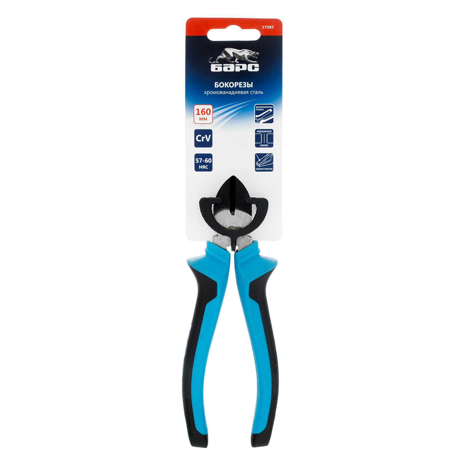 <p>Бокорезы Барс 17597 длиной 160 мм, из хромованадиевой стали, с двухкомпонентными рукоятками, предназначены для выполнения слесарных и ремонтно-монтажных работ: разрезания проводов, кабелей, проволоки и гвоздей. Они пригодятся в частных мастерских или на строительной площадке, будут полезны не только начинающему мастеру, но и профессионалу.</p><h2>Преимущества</h2><ul><li>Прочность — губки выполнены методом ковки из высококачественной хромованадиевой стали, закаленной в масле.</li><li>Защита от разрушения — антикоррозионное покрытие предохраняет металлические части от воздействия влаги.</li><li>Комфортная работа — эргономичные двухкомпонентные рукоятки с антискользящим покрытием обеспечивают надежный хват.</li></ul>