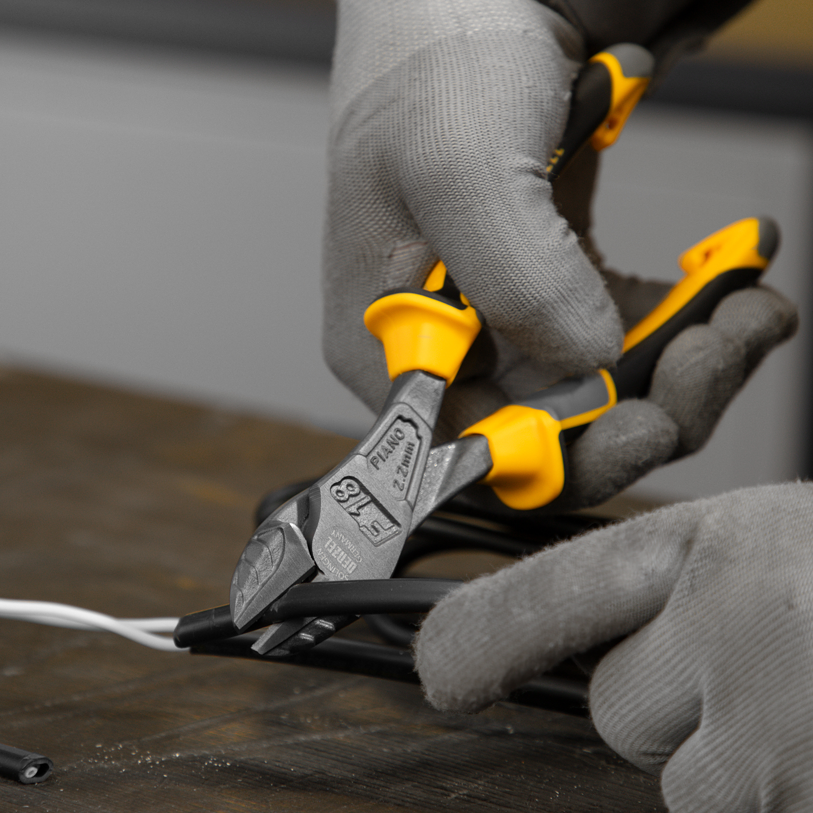 - Высокая эффективность — режущие кромки закалены до твердости 59-63 HRC, поэтому бокорезы справляются с твердыми материалами без риска поломки.