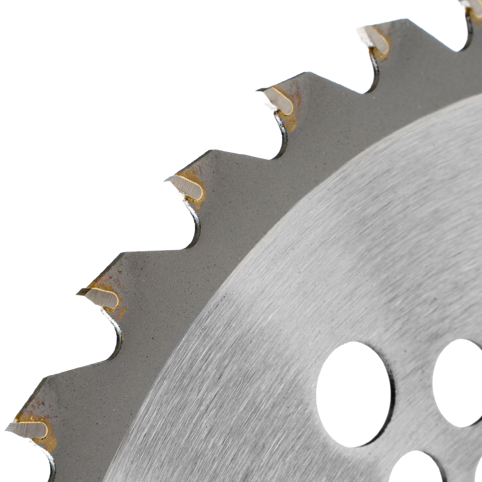 - Эффективность — режущие зубья с твердосплавными напайками из карбида вольфрама делают диск универсальным для скашивания всех видов растительности.