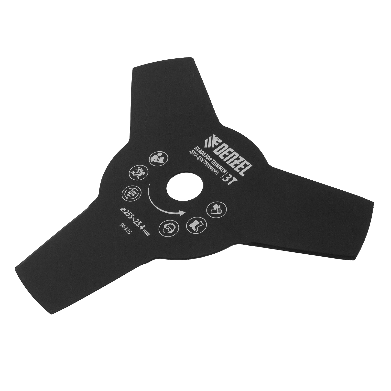 <p>Диск для триммера Denzel 96325 размером 255 х 25,4 мм, толщиной 1,6 мм, с 3 лезвиями, предназначен для скашивания травы различных типов, в том числе с жесткими стеблями (полыни, крапивы, лебеды). Рекомендован к использованию со всеми типами бензиновых триммеров, а также с электрическими триммерами мощностью не менее 1,2 кВт, например, Denzel 96611 и 96612.</p><h2>Преимущества</h2><ul><li>Прочность и долговечность — диск изготовлен из стали и обработан порошковой краской для защиты от коррозии.</li><li>3 лезвия — диском удобно скашивать высокую и жесткую траву.</li><li>Высокая производительность — лезвия с режущими кромками большой длины заточены с обеих сторон.</li></ul>