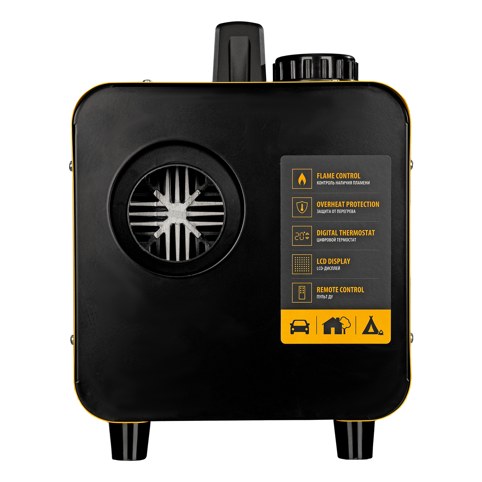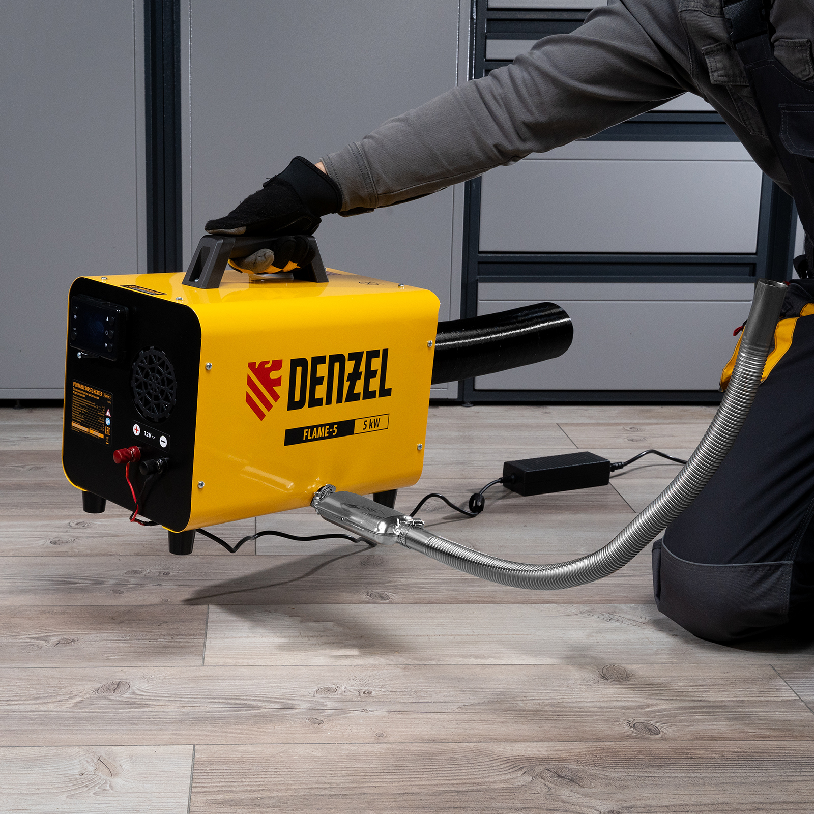 Дизельная тепловая портативная пушка Denzel Flame-5 96495 представляет собой автономный отопитель с максимальной мощностью 5 кВт, с цифровым термостатом. Работает по принципу непрямого нагрева, то есть выхлопные газы выводятся отдельно, не смешиваясь с потоком теплого воздуха. Предназначена для обогрева жилых, бытовых, подсобных и строительных помещений площадью до 50 м2. Портативную пушку размером 412 х 250 х 340 мм удобно перемещать и можно использовать в местах, удаленных от электричества, например, в поездке, походах, на рыбалке и для обогрева автомобиля.