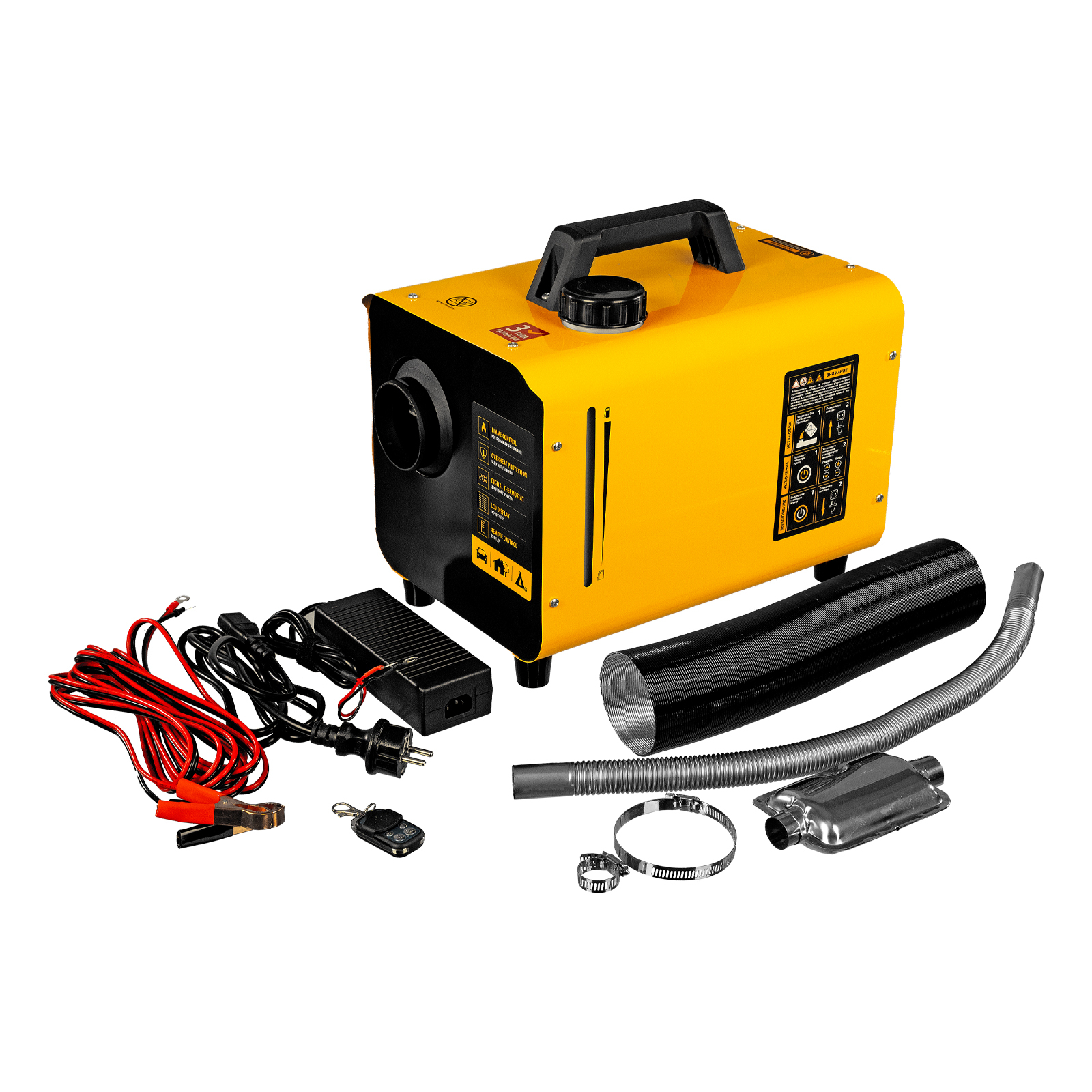 Дизельная тепловая пушка - 1 штГофрированная труба (для воздуховыпускного отверстия) - 1 штТруба отвода выхлопных газов(для выхлопного отверстия) - 1 штХомут для труб Ø19-Ø29 - 2 штХомут для труб Ø60-Ø83 - 1 штПодставка - 1 штГлушитель - 1 штКабель питания с клеммами для аккумулятора 12 В – 5 м - 1 штБлок питания 230 В~ 50 Гц 12 В – 3 м - 1 штПульт ДУ - 1 штРуководство по эксплуатации с гарантийным талоном - 1 шт