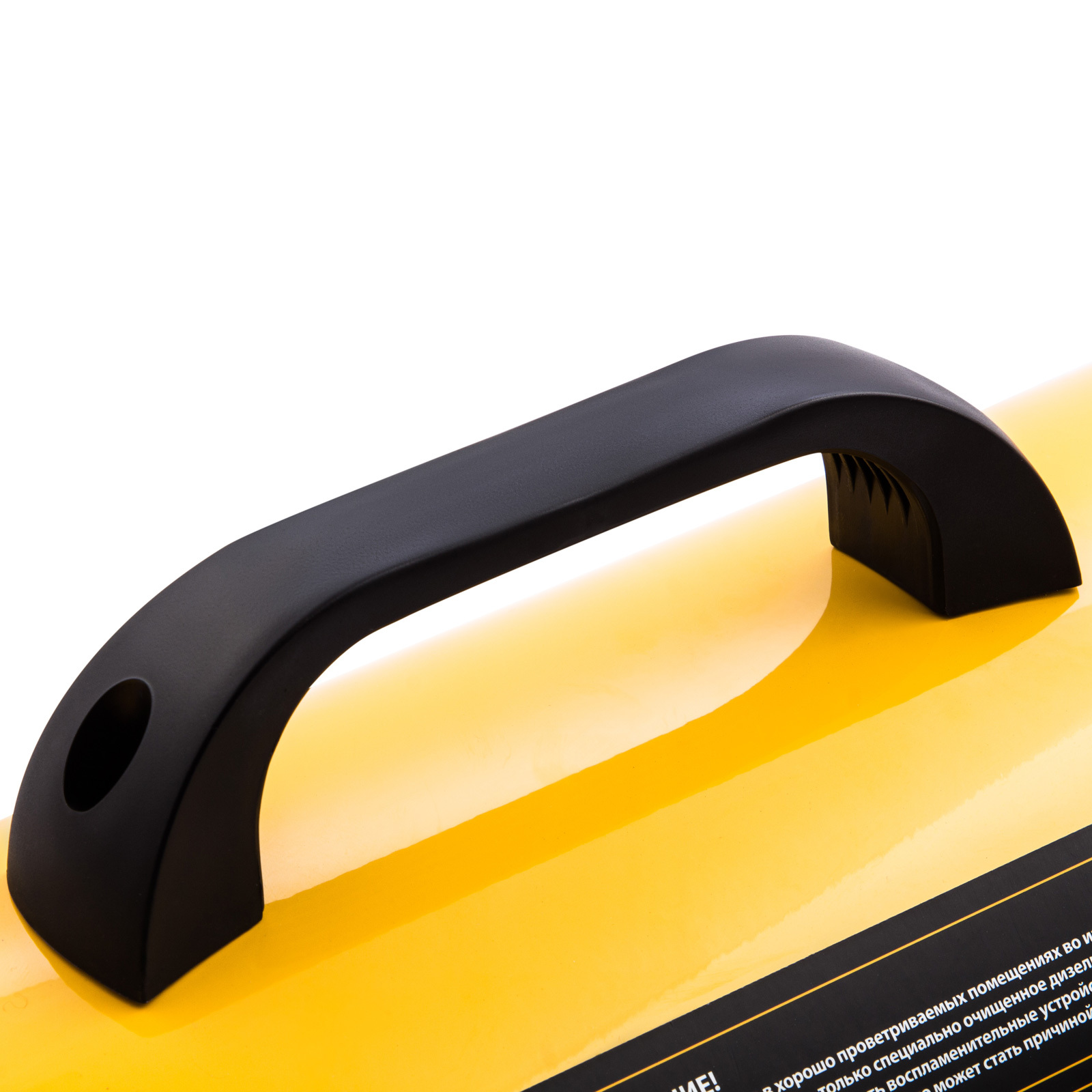 Дизельная тепловая пушка Denzel DHG-10 96481 мощностью 10 кВт и производительностью 300 куб. м/ч предназначена для прямого нагрева воздуха в цехах, ангарах, хранилищах и других нежилых помещениях с хорошей вентиляцией. Максимальная площадь обогрева составляет 100 кв. м. Пушка служит эффективным источником тепла в полярных экспедициях. Пригодится также на строительной площадке для прогрева бетона, просушки стен и разморозки траншей. Для заправки может использоваться любое дизельное топливо: летнее, зимнее и арктическое. Преимущества Встроенная система безопасности — подача топлива прекращается в случае затухания пламени, перегрева и отключения питания. Эффективность — благодаря системе прямого нагрева и теплоотражающему экрану воздух в помещении прогревается быстро и равномерно. Низкий расход топлива — продолжительность работы без дозаправки составляет 12 часов. Датчик уровня топлива — своевременная заправка бака позволяет избежать перерывы в работе. Защита от засорения — встроенный фильтр грубой очистки препятствует попаданию в топливную систему посторонних частиц. Подтвержденное качество — на устройство действует гарантия 3 года.