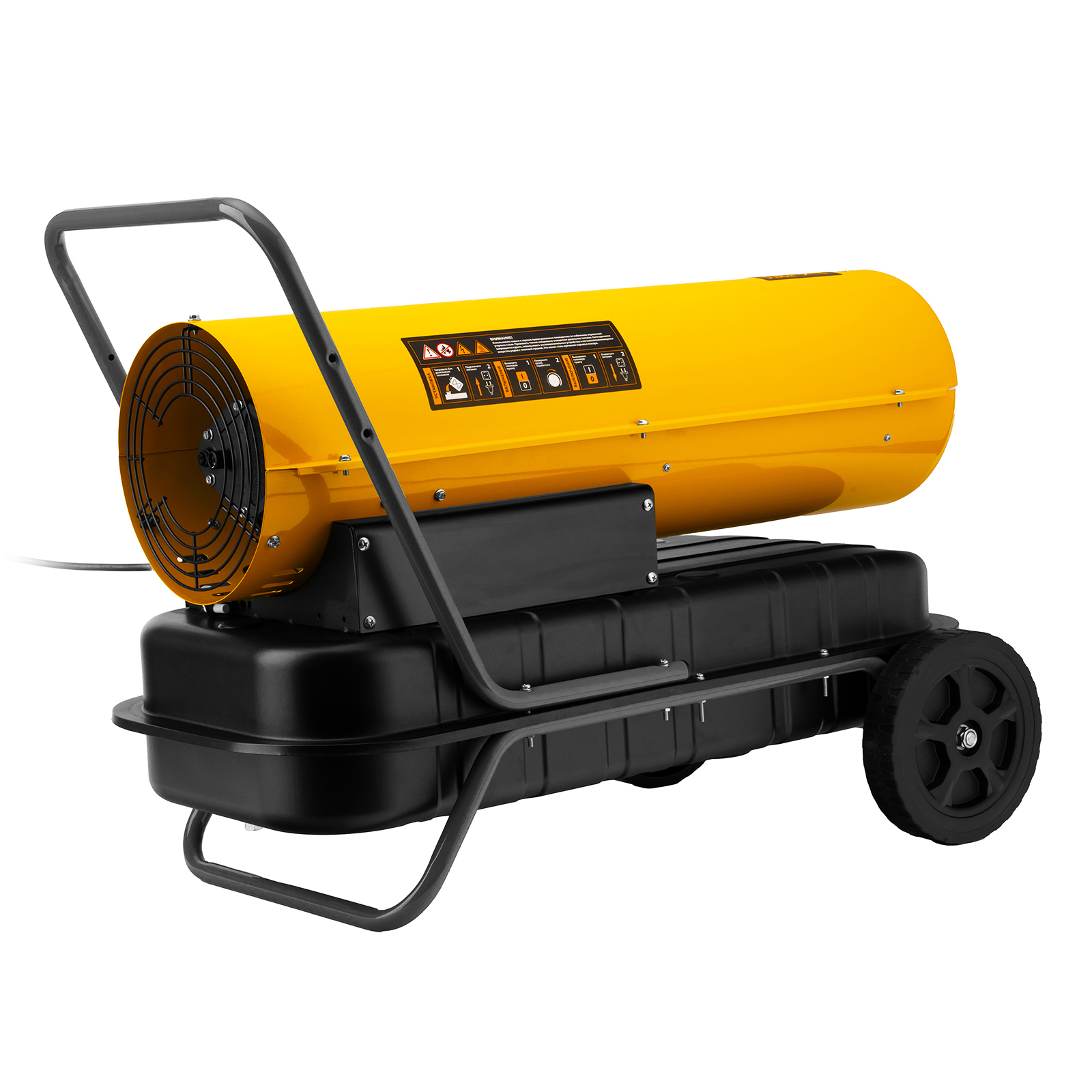 - Удобство транспортировки — тепловая пушка оснащена ручкой и 2 колесами.
