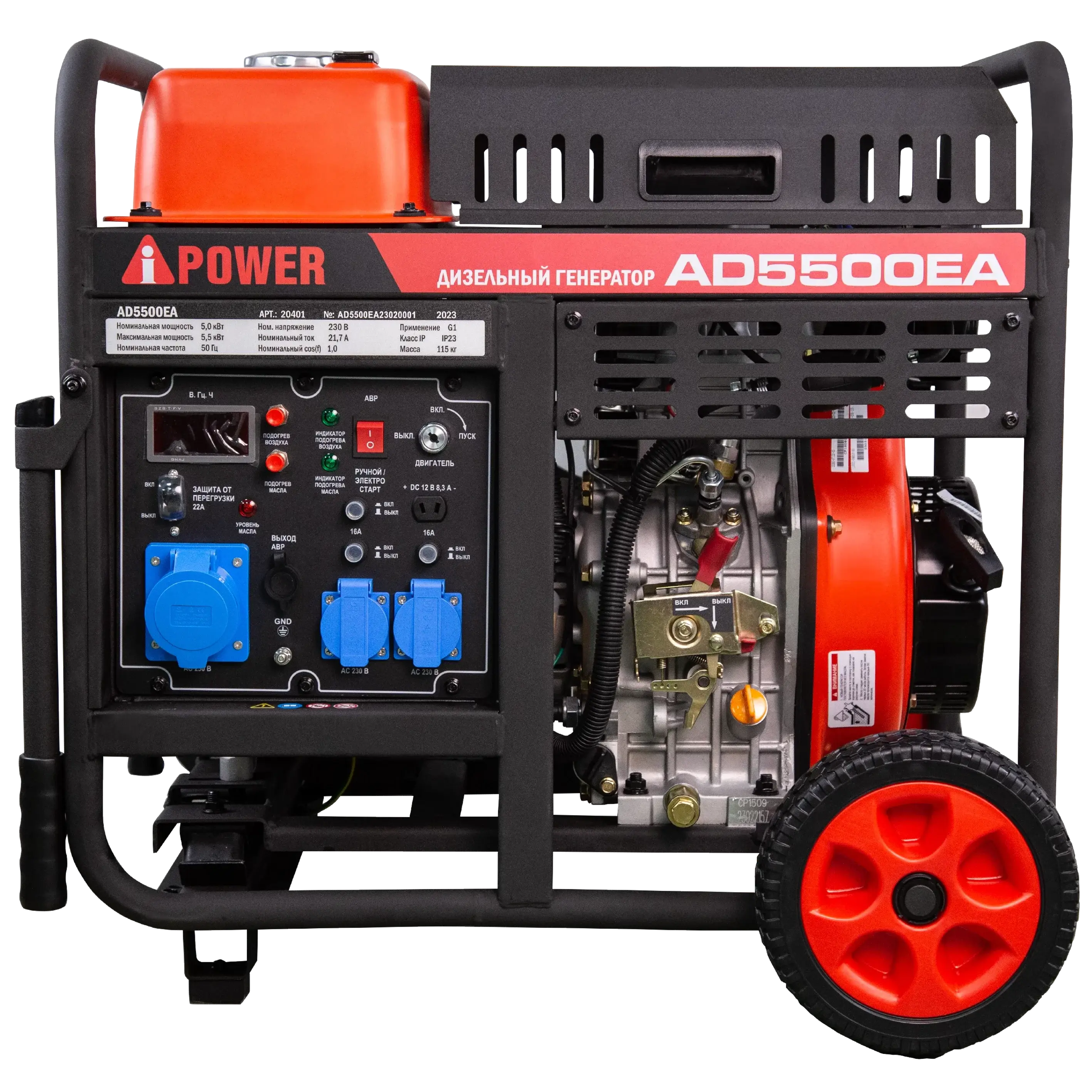 Дизельный генератор AD5500EA – однофазная электростанция номинальной мощностью 5 кВт с дизельным двигателем воздушного охлаждения. Отлично подходит для мобильного электроснабжения загородных домов