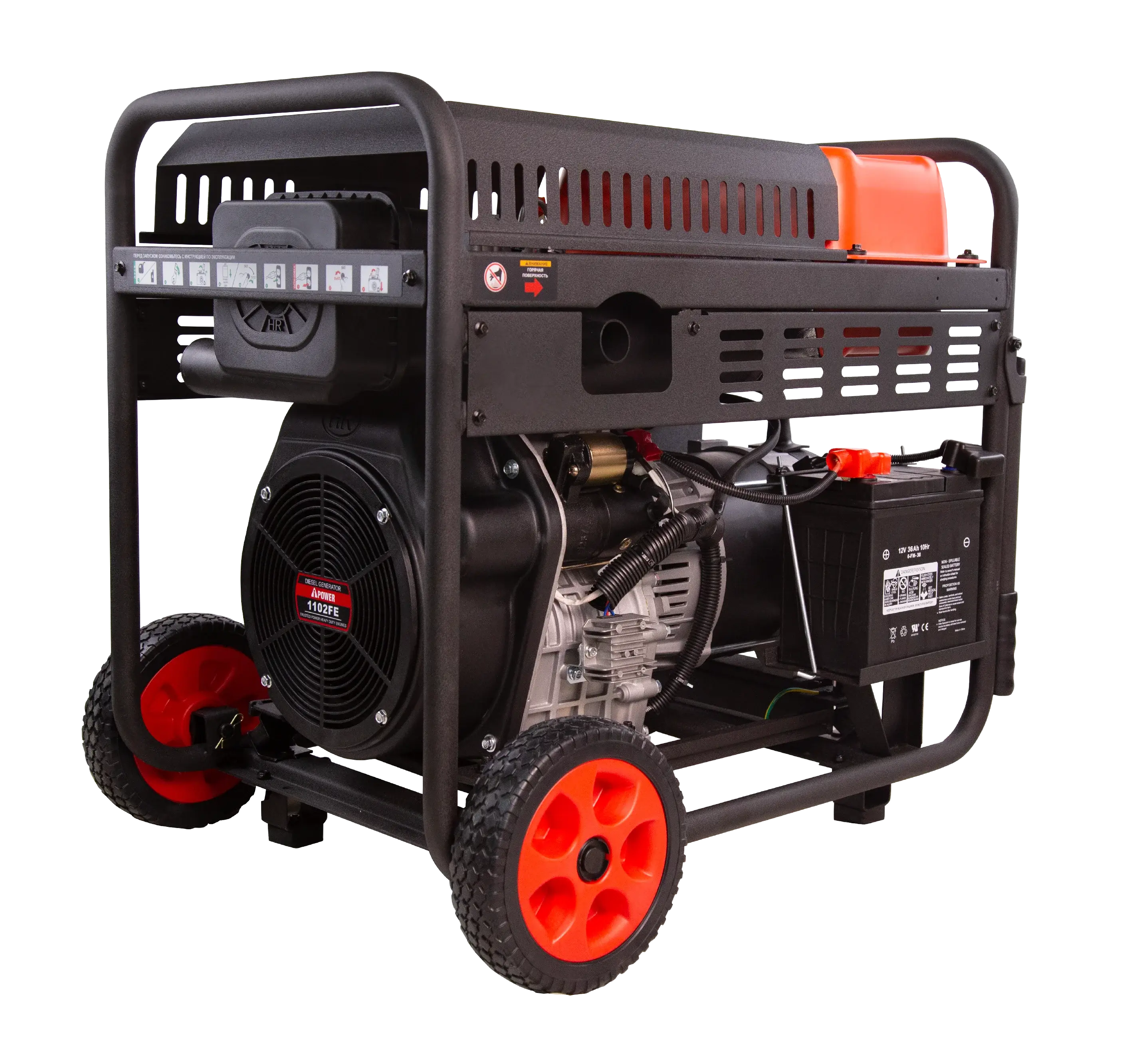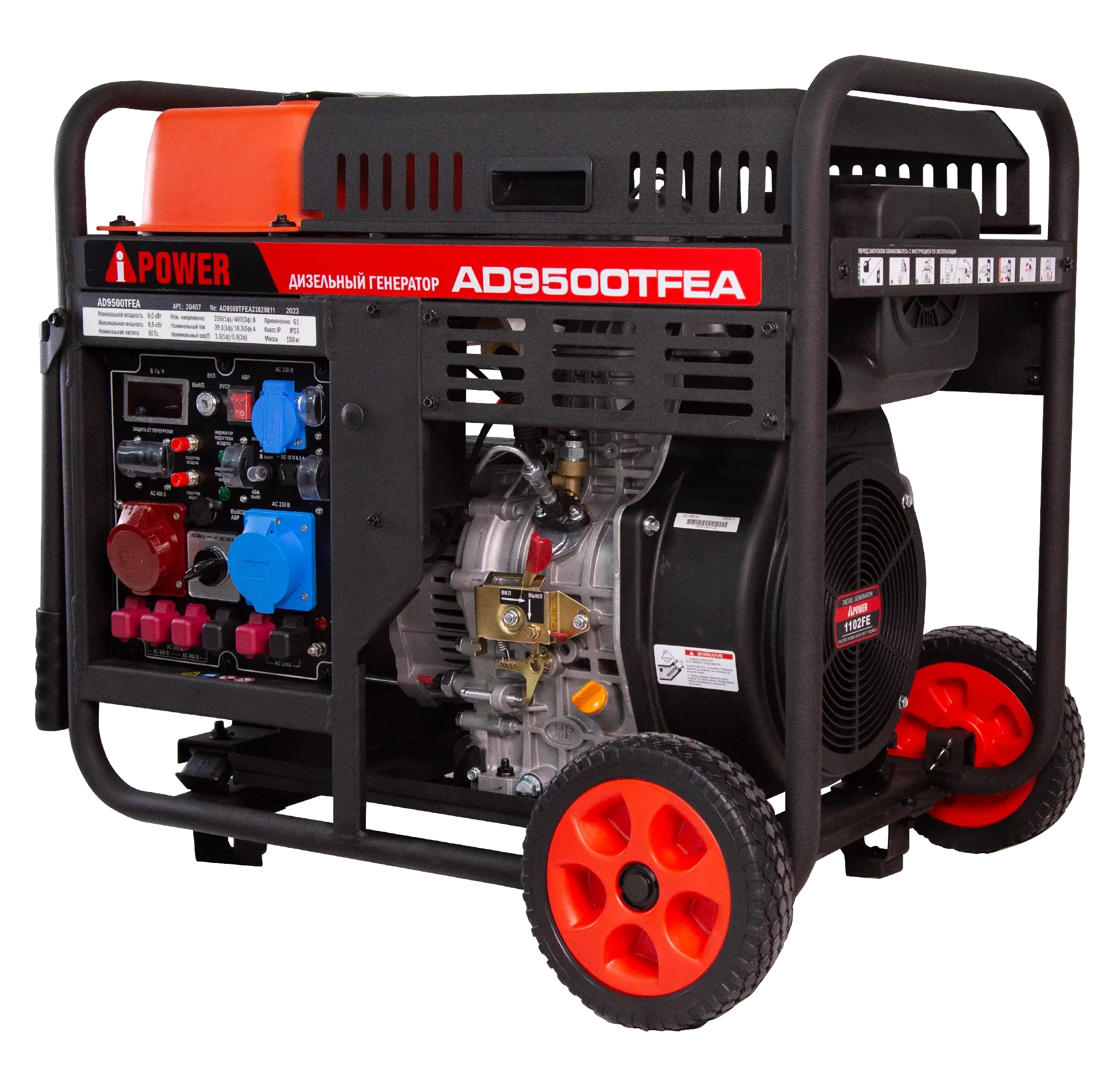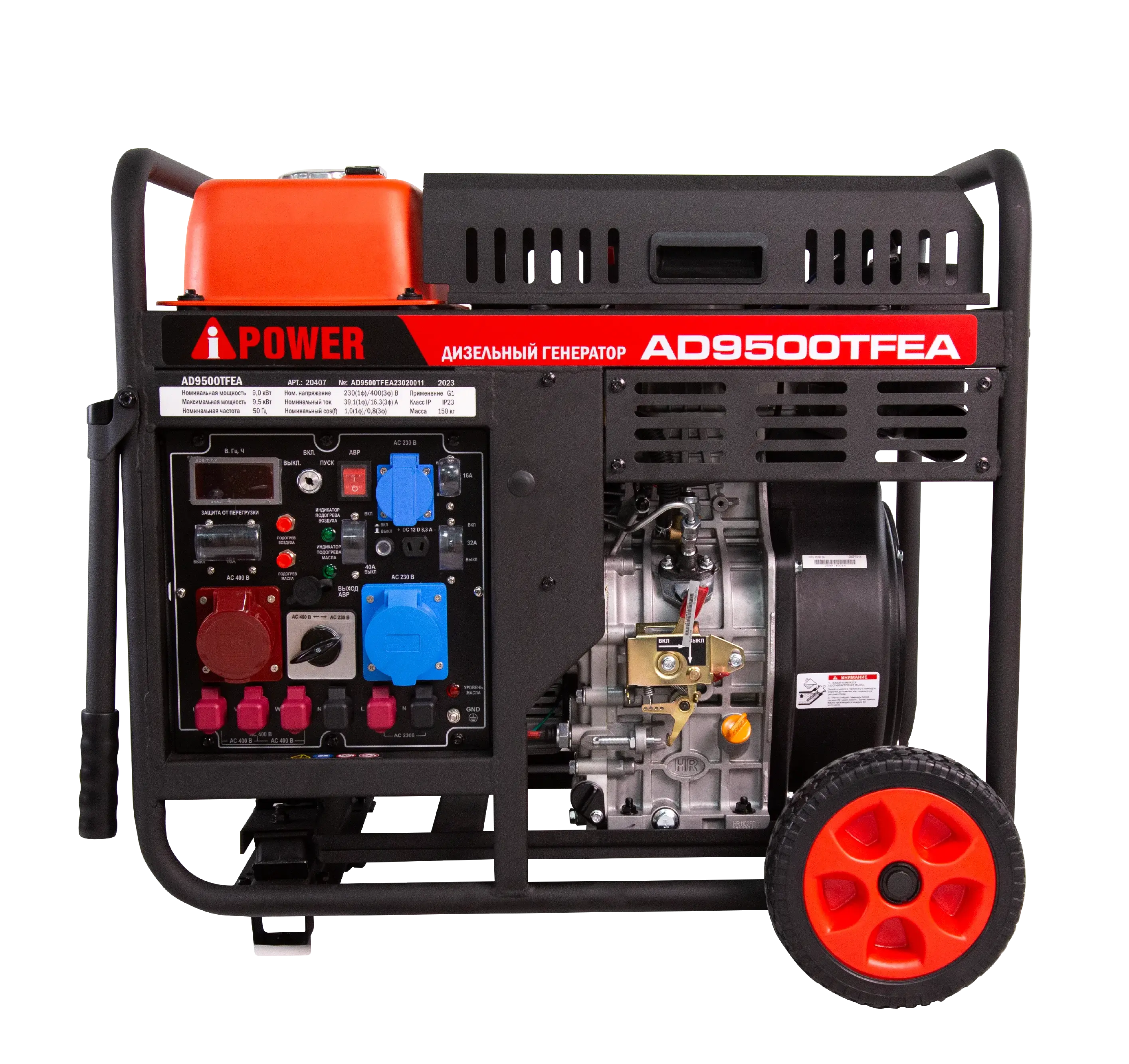 Дизельный генератор AD9500TFEA – равномощная электростанция номинальной мощностью 9 кВт с дизельным двигателем воздушного охлаждения. Отлично подходит для мобильного электроснабжения загородных домов