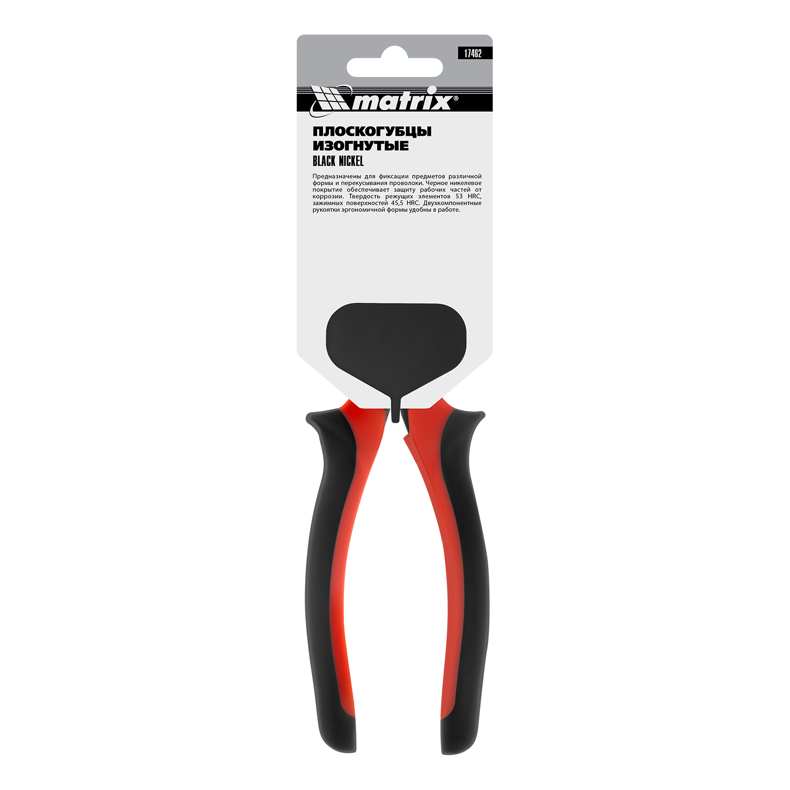 <p>Изогнутые длинногубцы Matrix Black Nickel 17462 длиной 200 мм, с двухкомпонентными рукоятками, за счет продуманной формы облегчают работу в труднодоступных местах. Инструмент используют для захвата и удерживания гвоздей, проводов, а также для перерезания проволоки. Длинногубцы пригодятся во время слесарных, монтажных и ремонтных работ.</p><h2>Преимущества</h2><ul><li>Прочность и долговечность — рабочие части закалены до твердости 53 HRC, что позволило повысить эксплуатационные свойства инструмента.</li><li>Антикоррозийная защита — на рабочие кромки нанесено черное никелевое покрытие.</li><li>Комфортная работа — двухкомпонентные рукоятки эргономичной формы не выскальзывают из руки.</li></ul>