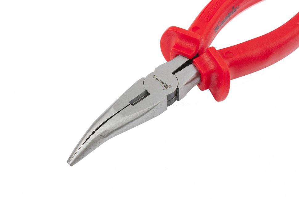 Длинногубцы изогнутые Econom, 160 мм, шлифованные, пластмассовые рукоятки Matrix