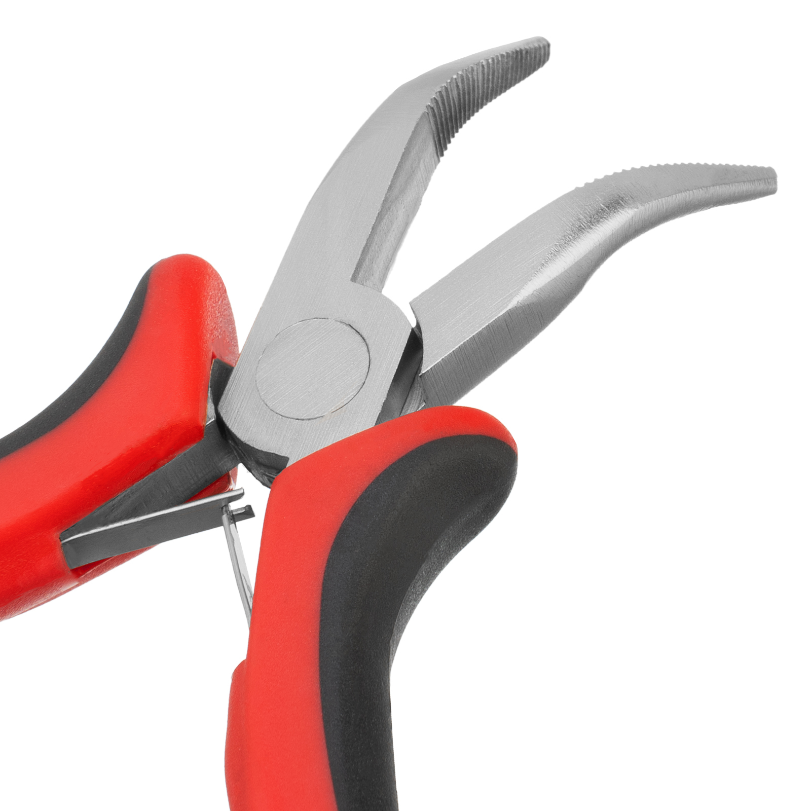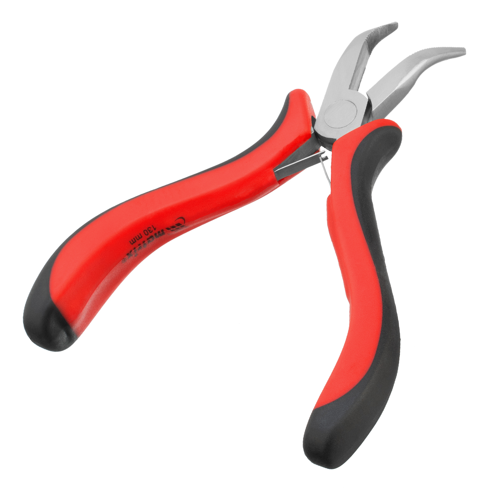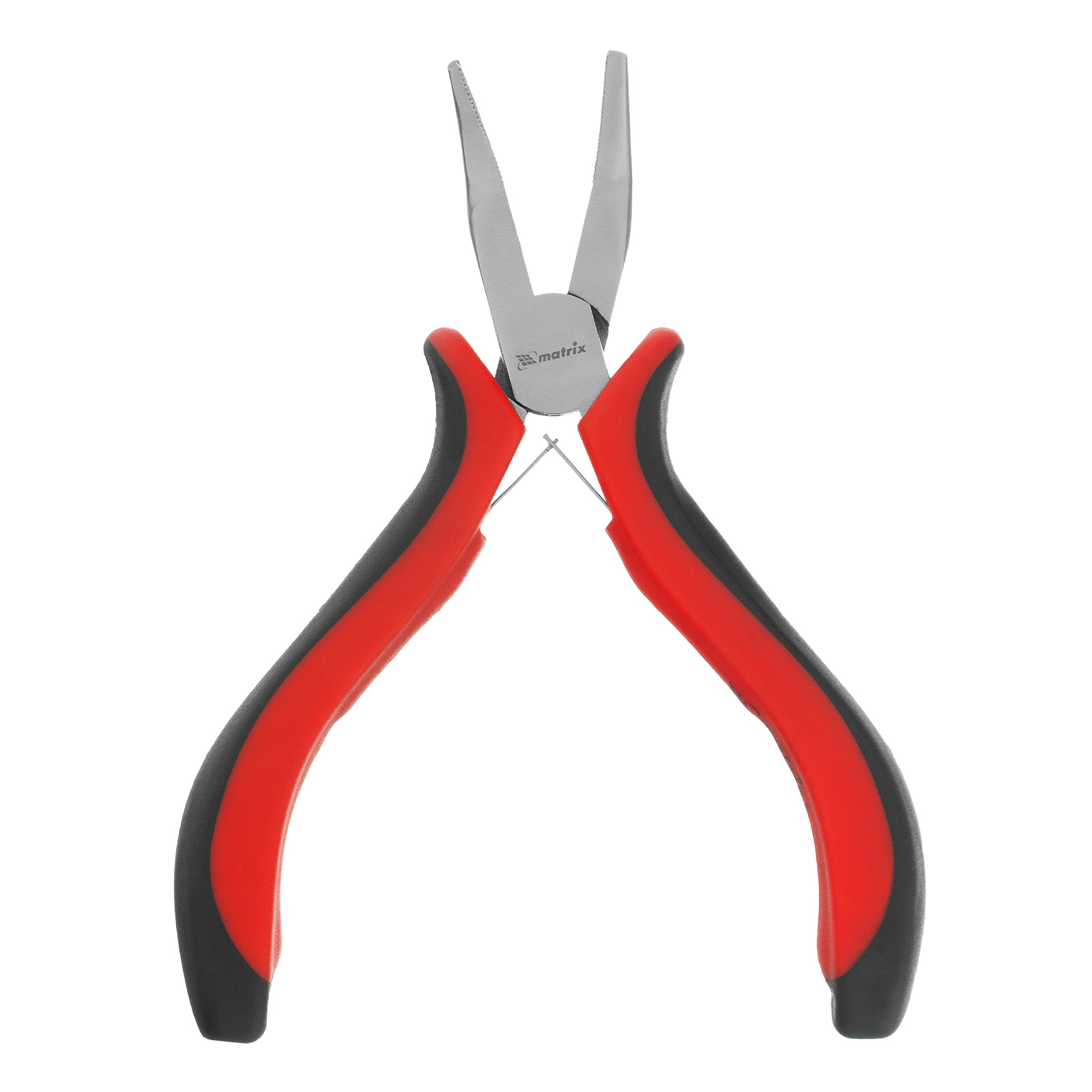 Длинногубцы изогнутые Mini, 130 мм, никелированные, авторазжим, двухкомпонентные рукоятки Matrix