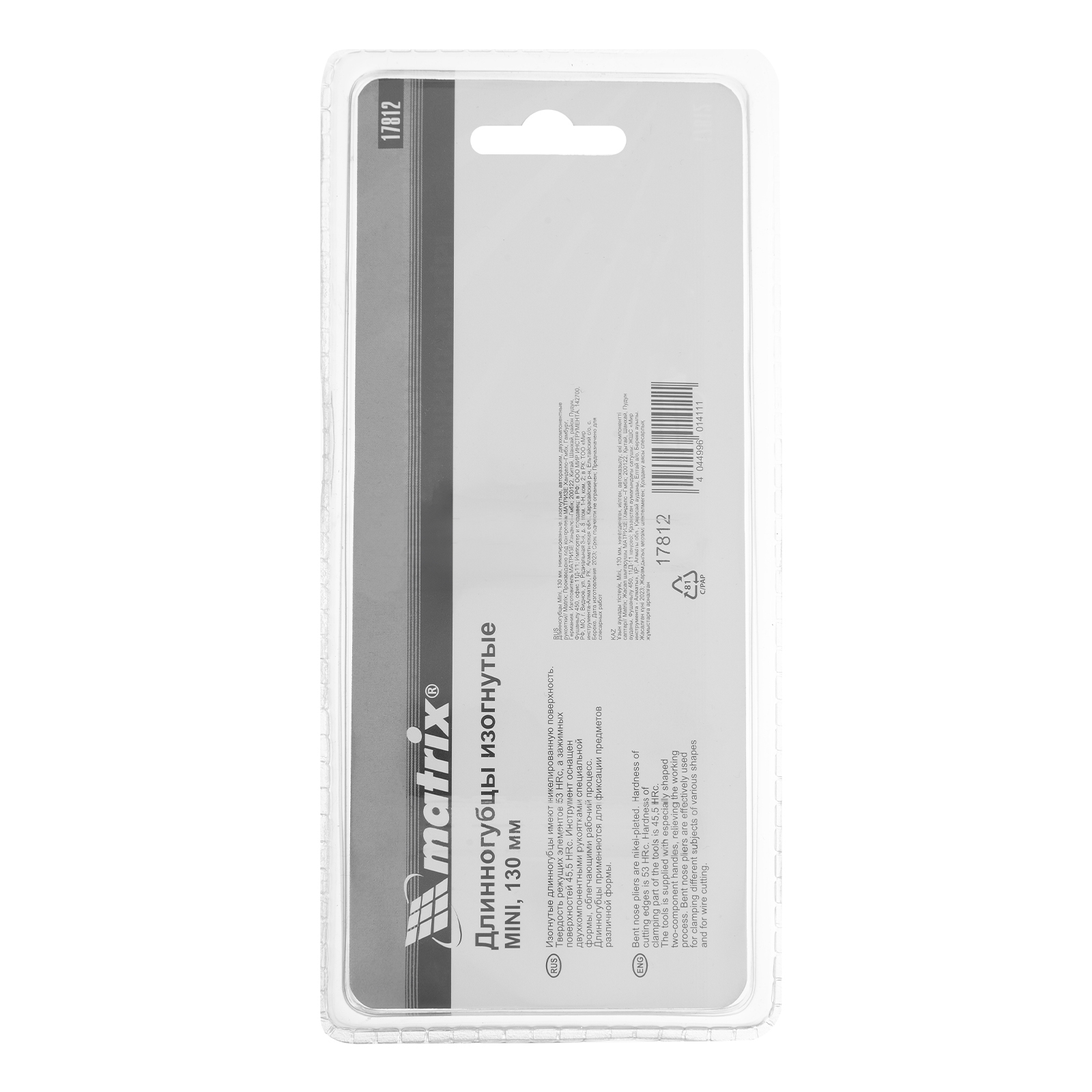 <p>Изогнутые никелированные длинногубцы Matrix Mini 17812 длиной 130 мм, с авторазжимом и двухкомпонентными рукоятками, пригодятся во время монтажных/демонтажных и ремонтных работ, например, починки бытовой техники. С их помощью удобно захватывать и удерживать мелкие детали, проволоку и провода. Мини-длинногубцы позволяют выполнять операции, требующие высокой точности и аккуратности. Изогнутые губки облегчают работу в труднодоступных местах.</p><h2>Преимущества</h2><ul><li>Прочность и износостойкость — зажимные губки обладают твердостью около 40 HRC, а режущие кромки — около 46 HRC.</li><li>Защита от разрушения — никелированные рабочие части устойчивы к образованию коррозии.</li><li>Авторазжим — длинногубцы можно удерживать одной рукой, что экономит силы и время мастера.</li><li>Комфортная работа — двухкомпонентные рукоятки с антискользящими вставками обеспечивают надежный хват.</li></ul>