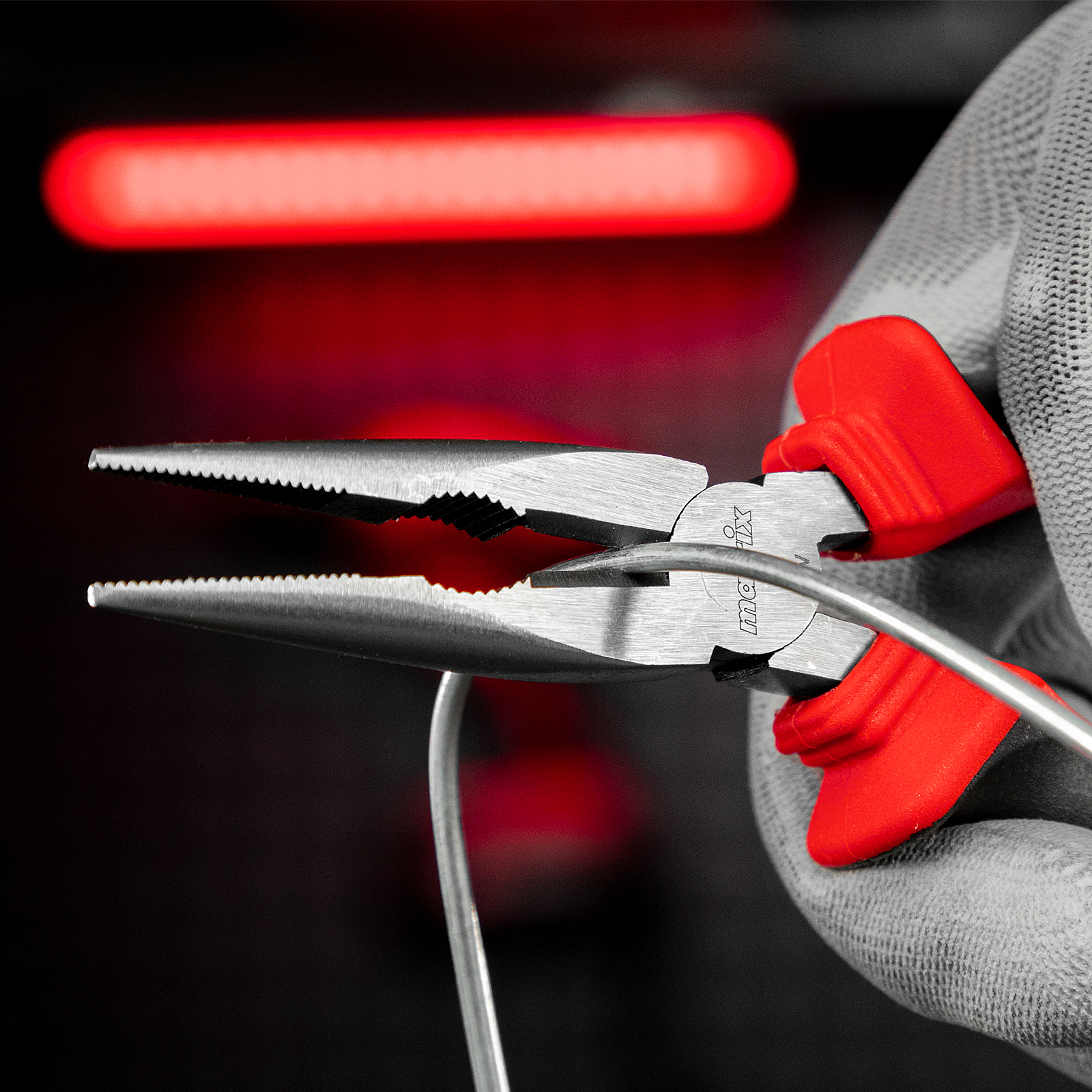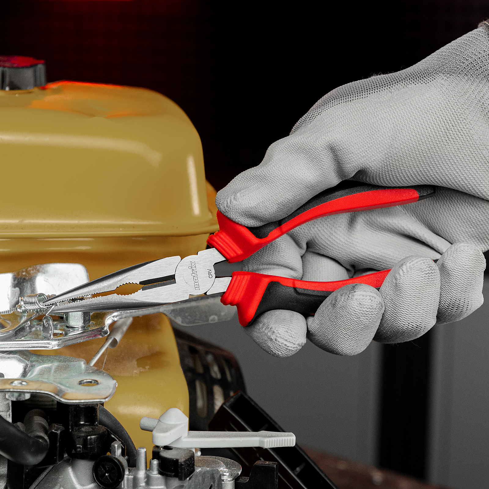 - Прочность и долговечность — длинногубцы изготовлены из стали 40 CrV, рабочие части прошли индукционную закалку до твердости 52-58 HRC.