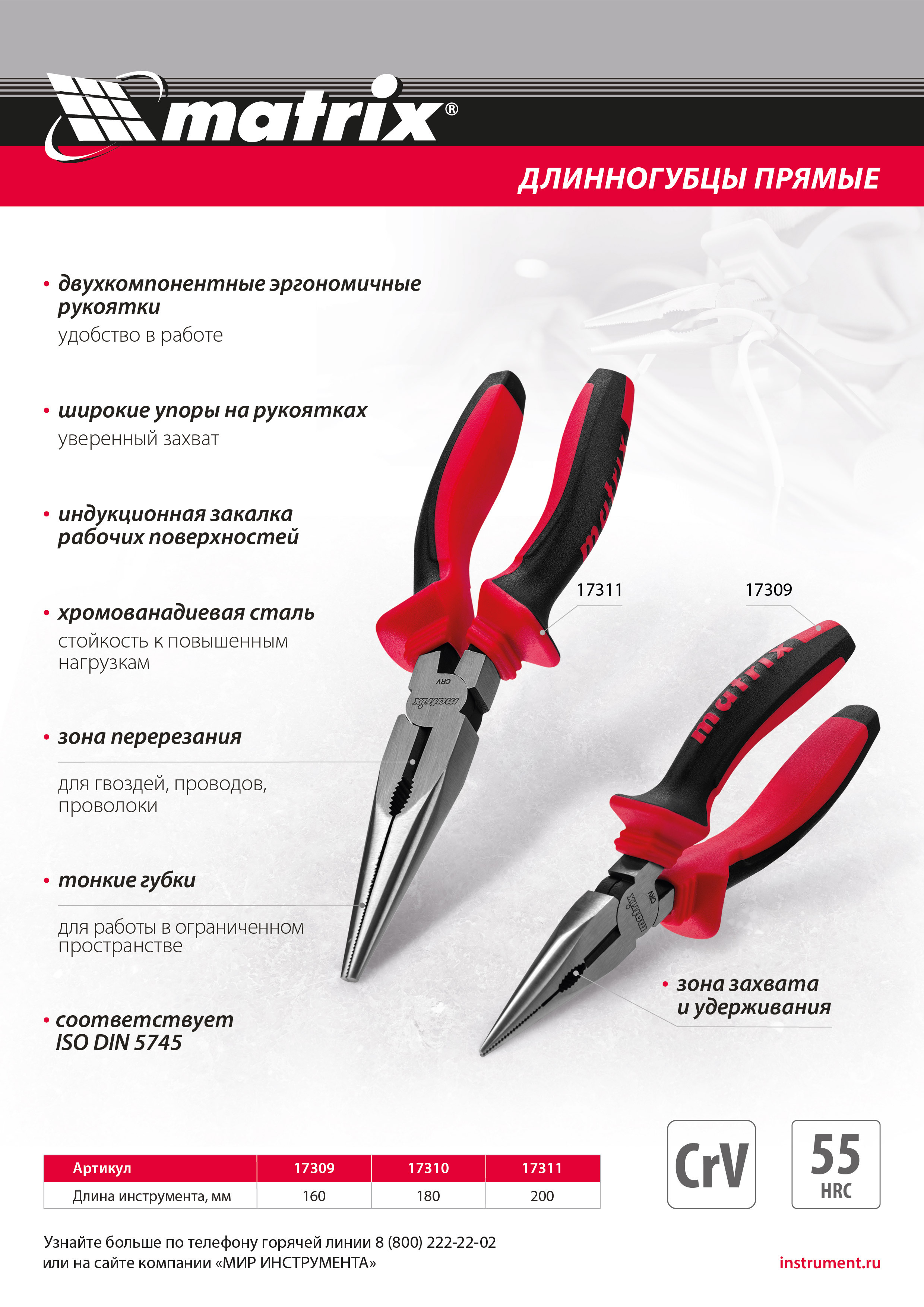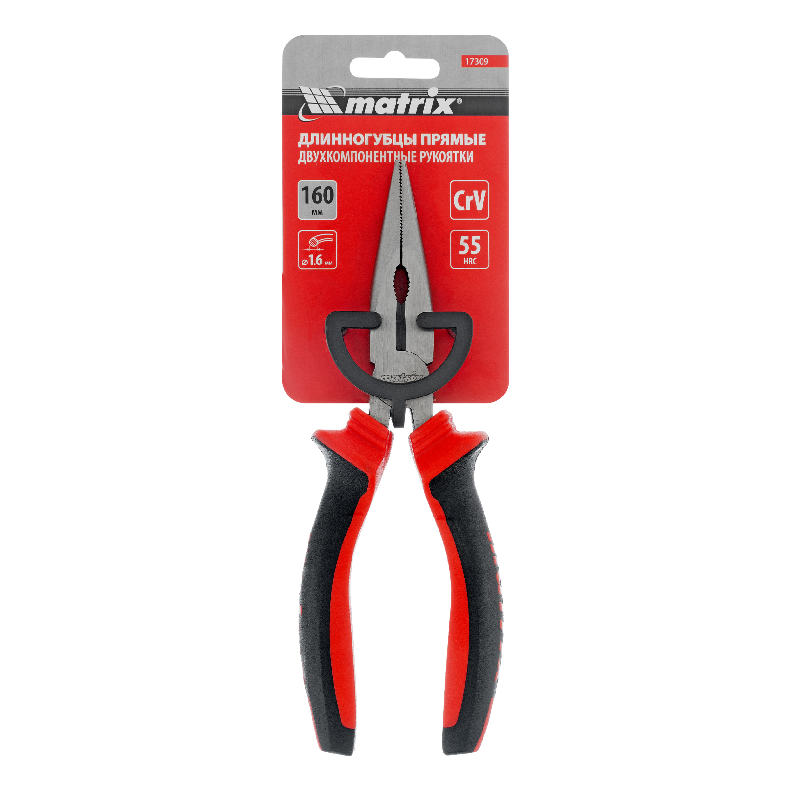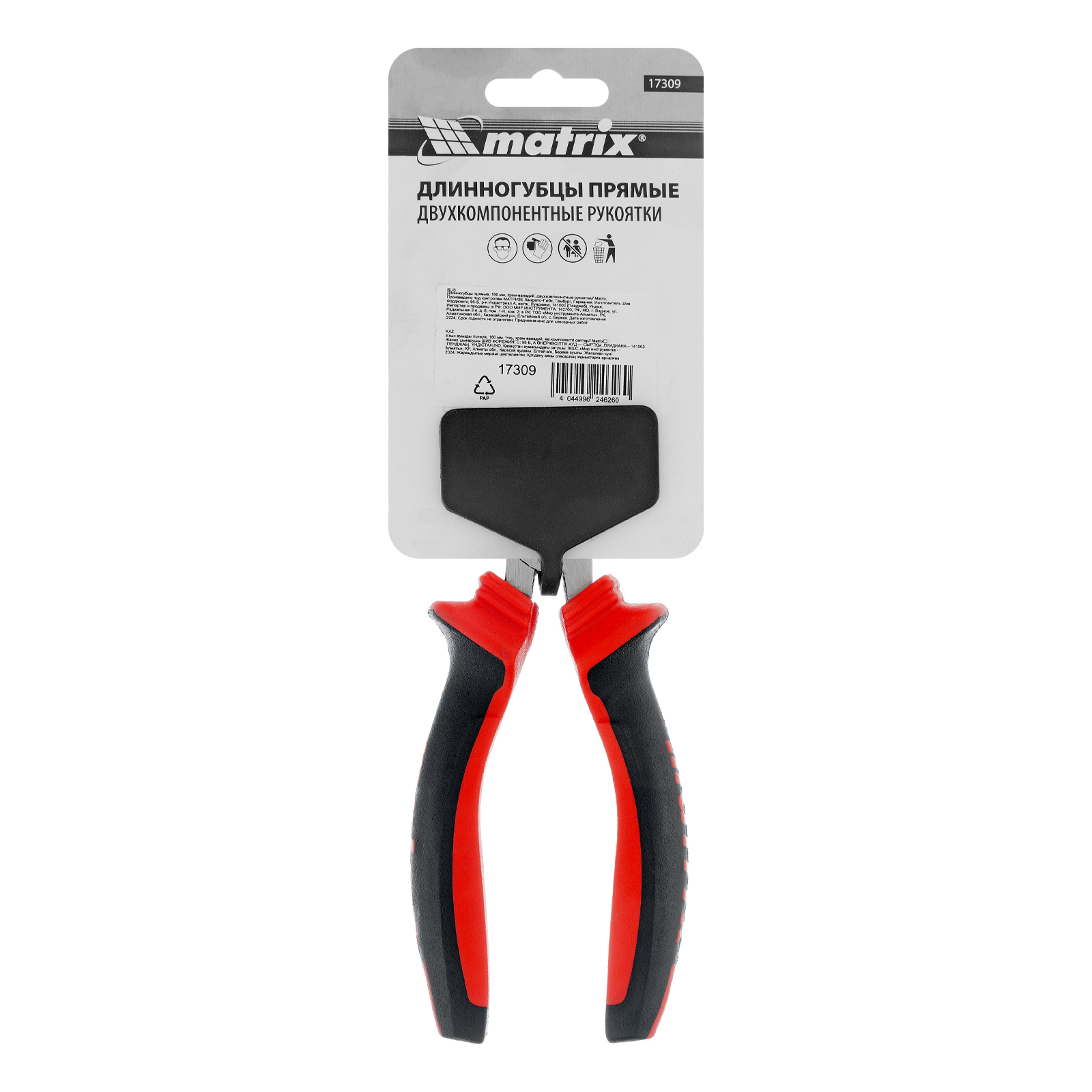 Длинногубцы прямые, 160 мм, хром-ванадий, двухкомпонентные рукоятки Matrix